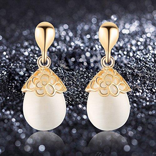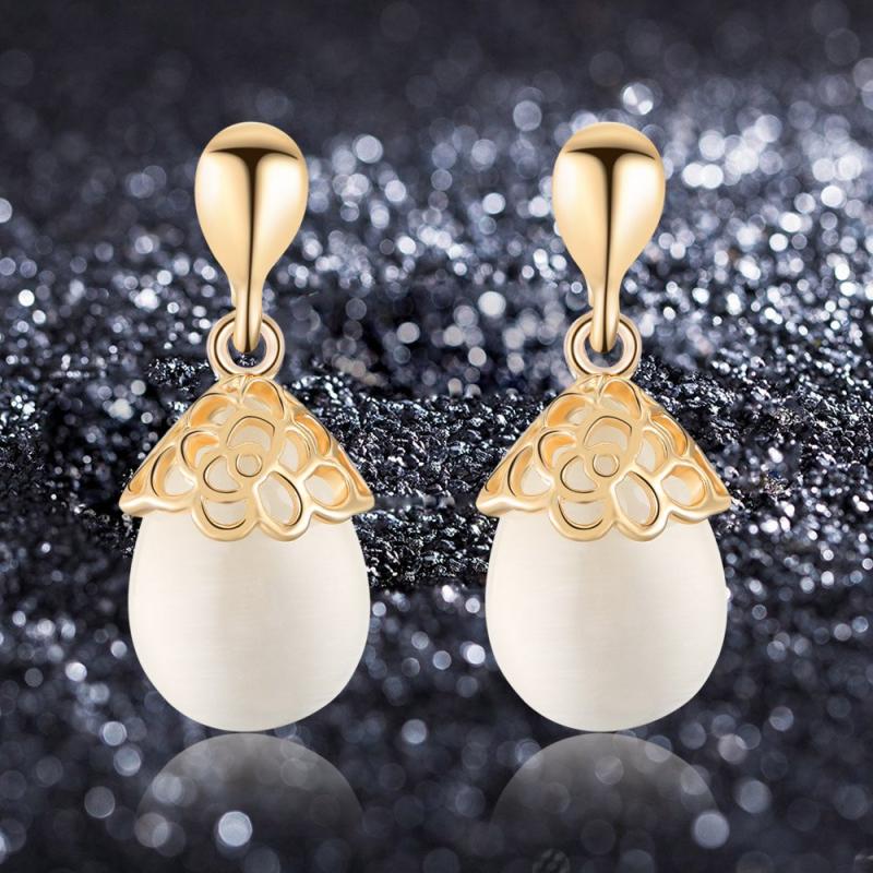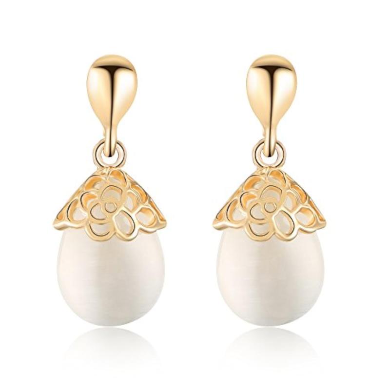 Elevate your style with these delicate and tantalizing plated opal drop earrings from Luxuria Edition.