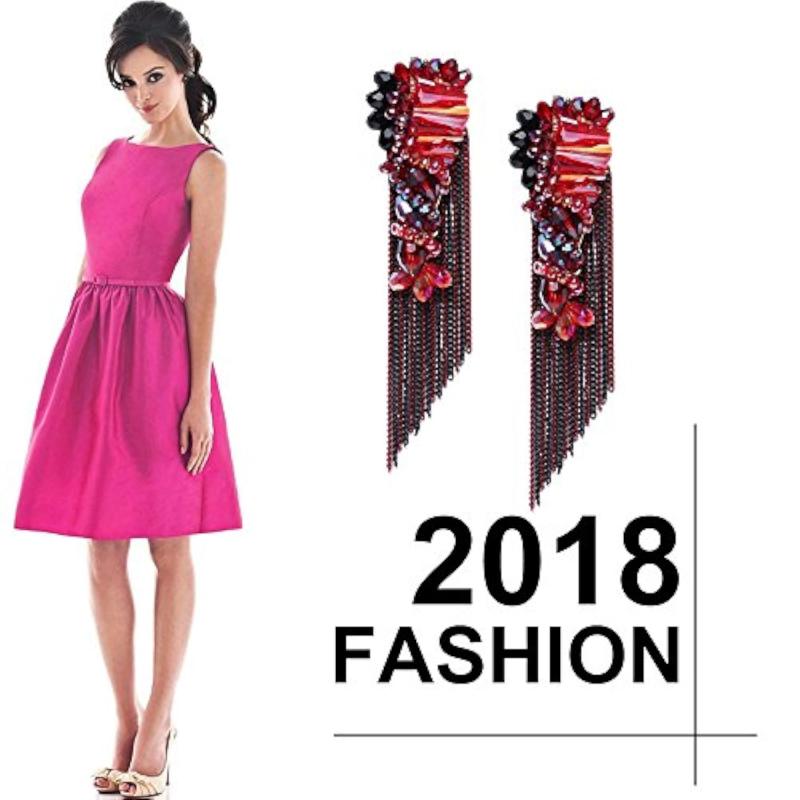 Make a statement with these gorgeous tassel earrings featuring colorful chain drops. Perfect for adding a touch of glamour to any outfit.
