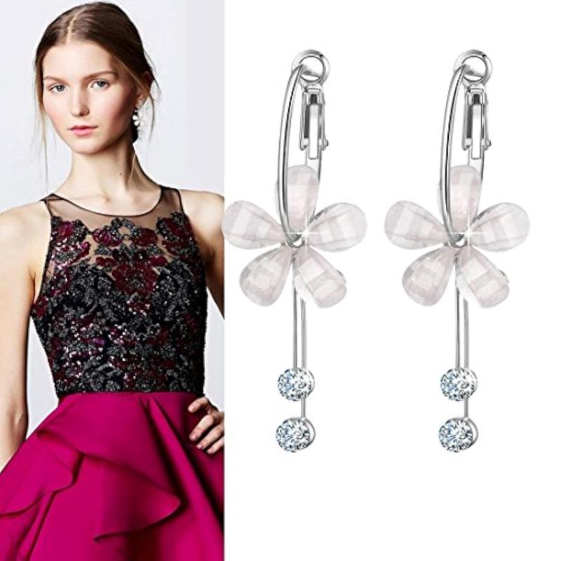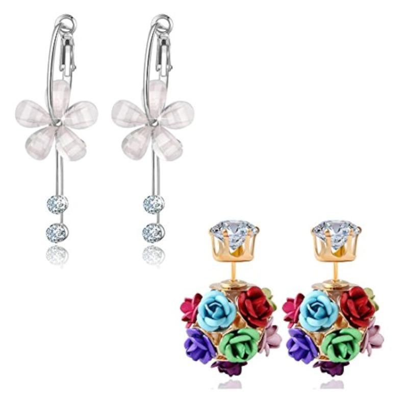 Elegant pair of earrings with a luxurious floral design in off-white and multicolor. Perfect for adding a touch of glamour to your outfit.