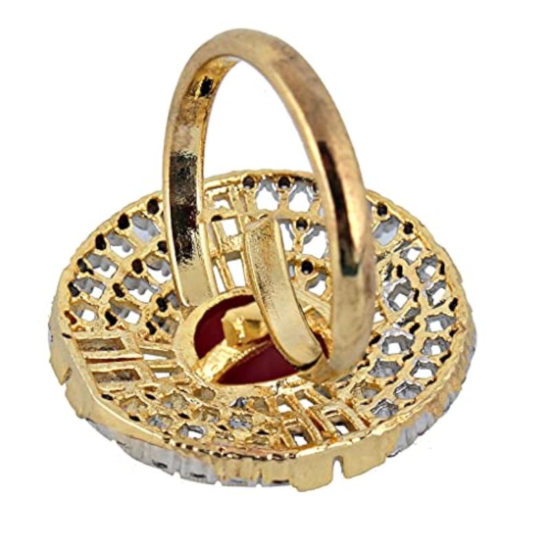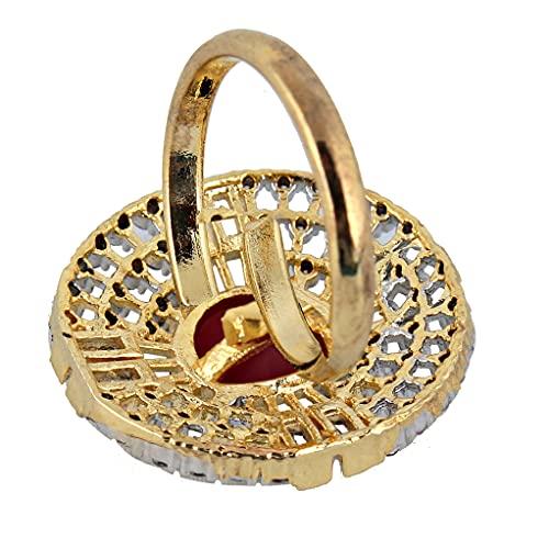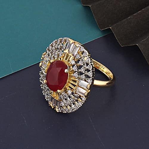 Stylish magenta American diamond ring with 18K plating, perfect for any occasion.
