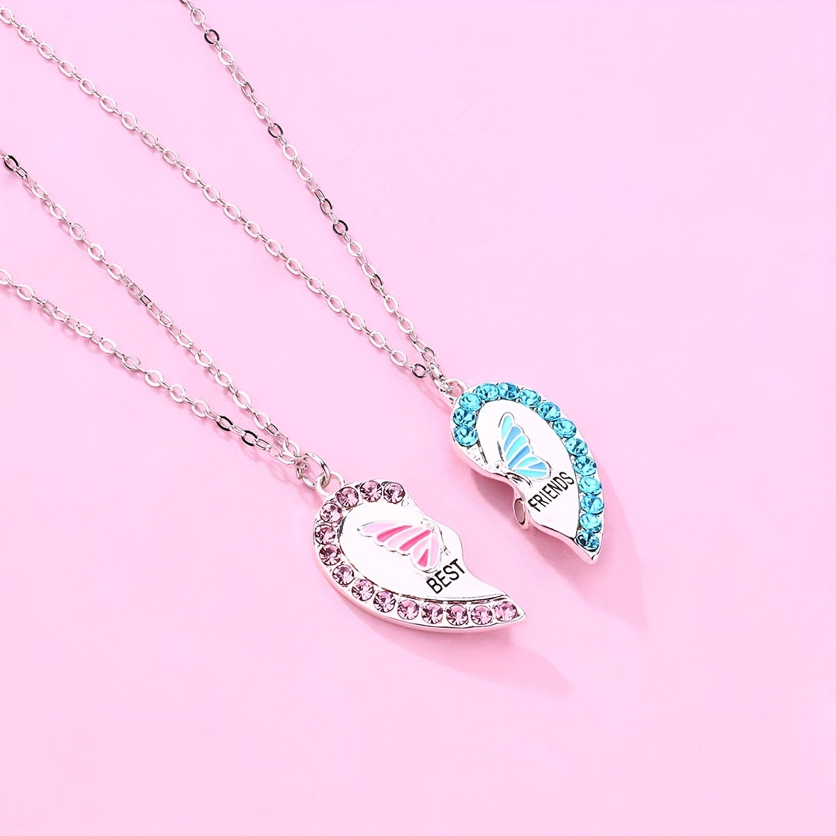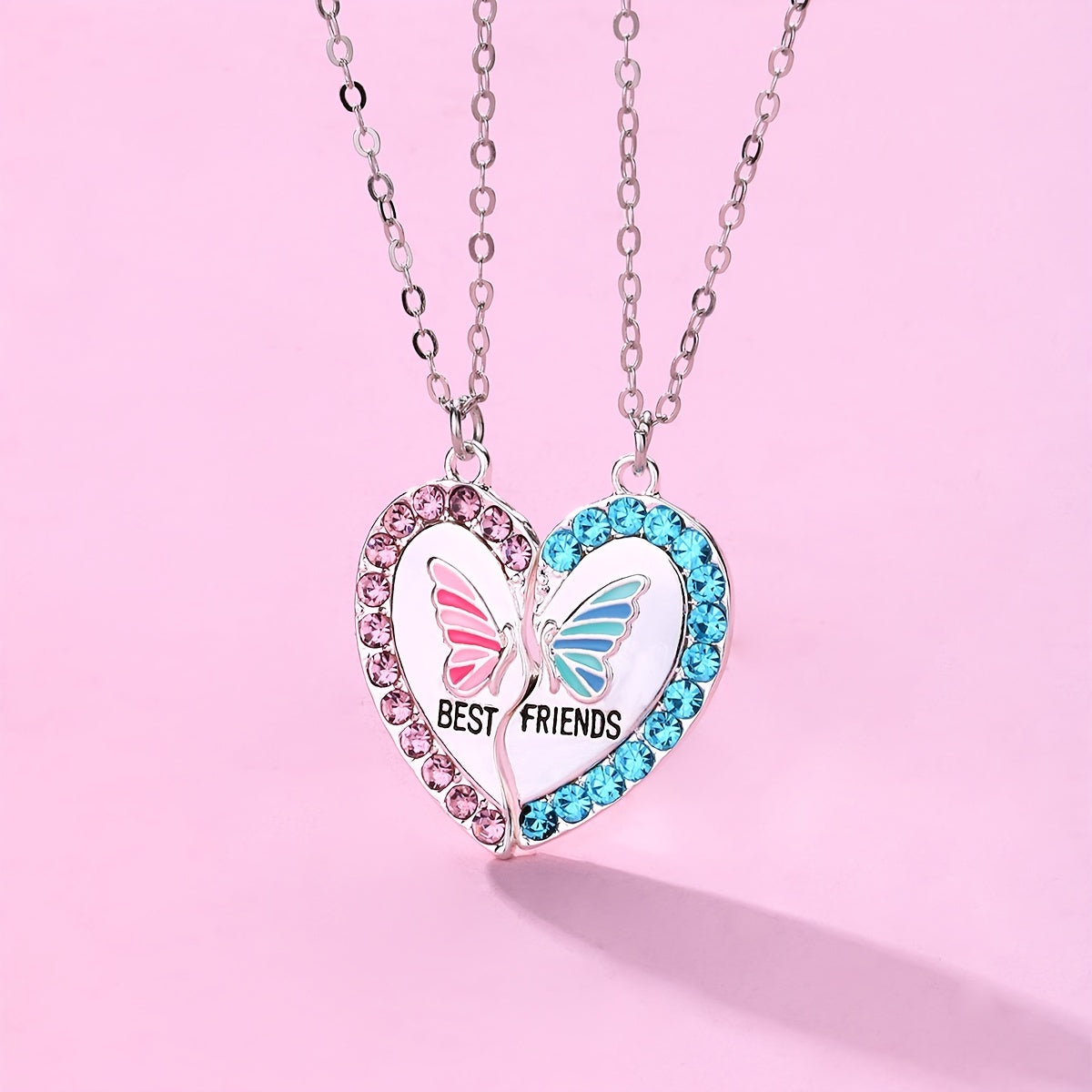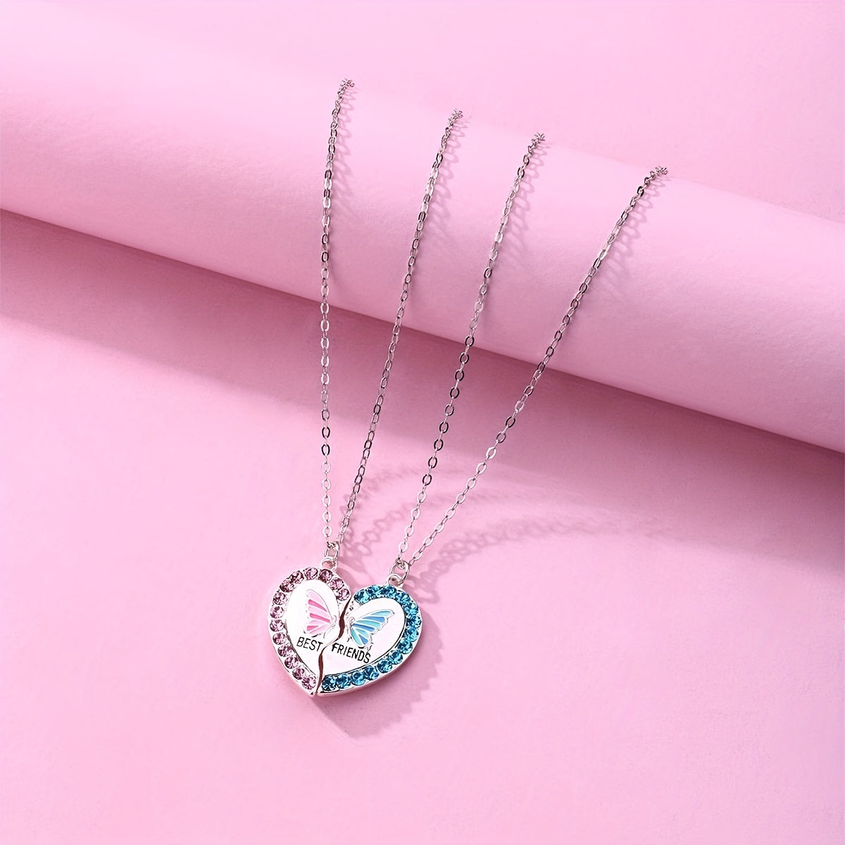 This necklace set features a heart-shaped pendant with a butterfly pattern, making it a perfect gift for women or girls. The stitching design adds a unique touch to the necklace, making it a sweet and stylish accessory.
