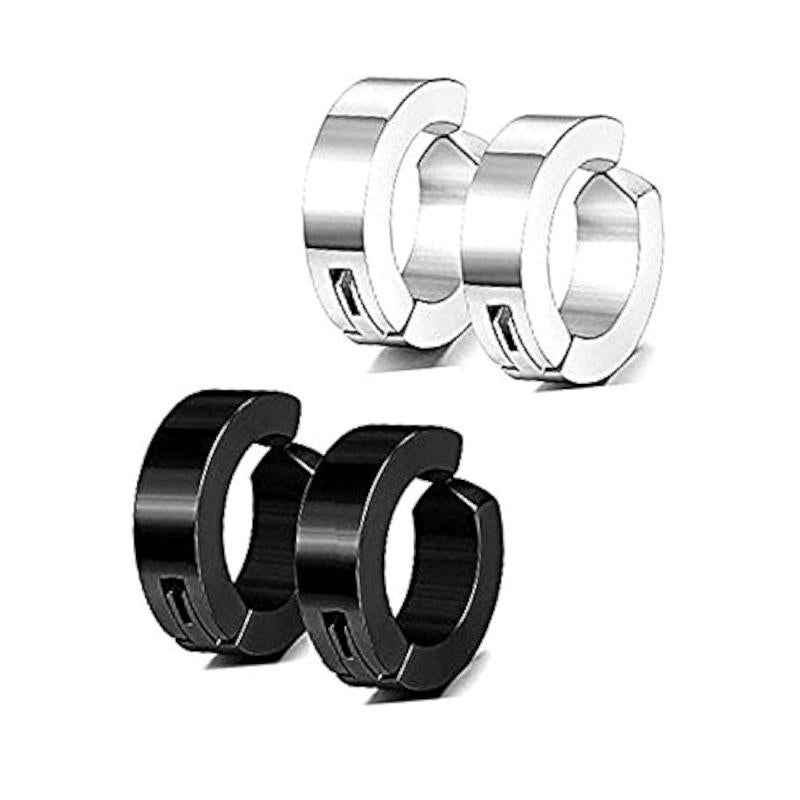 Set of 2 pairs of magnetic hoop earrings made of high-quality stainless steel. Perfect for husbands' birthday or anniversary gift.