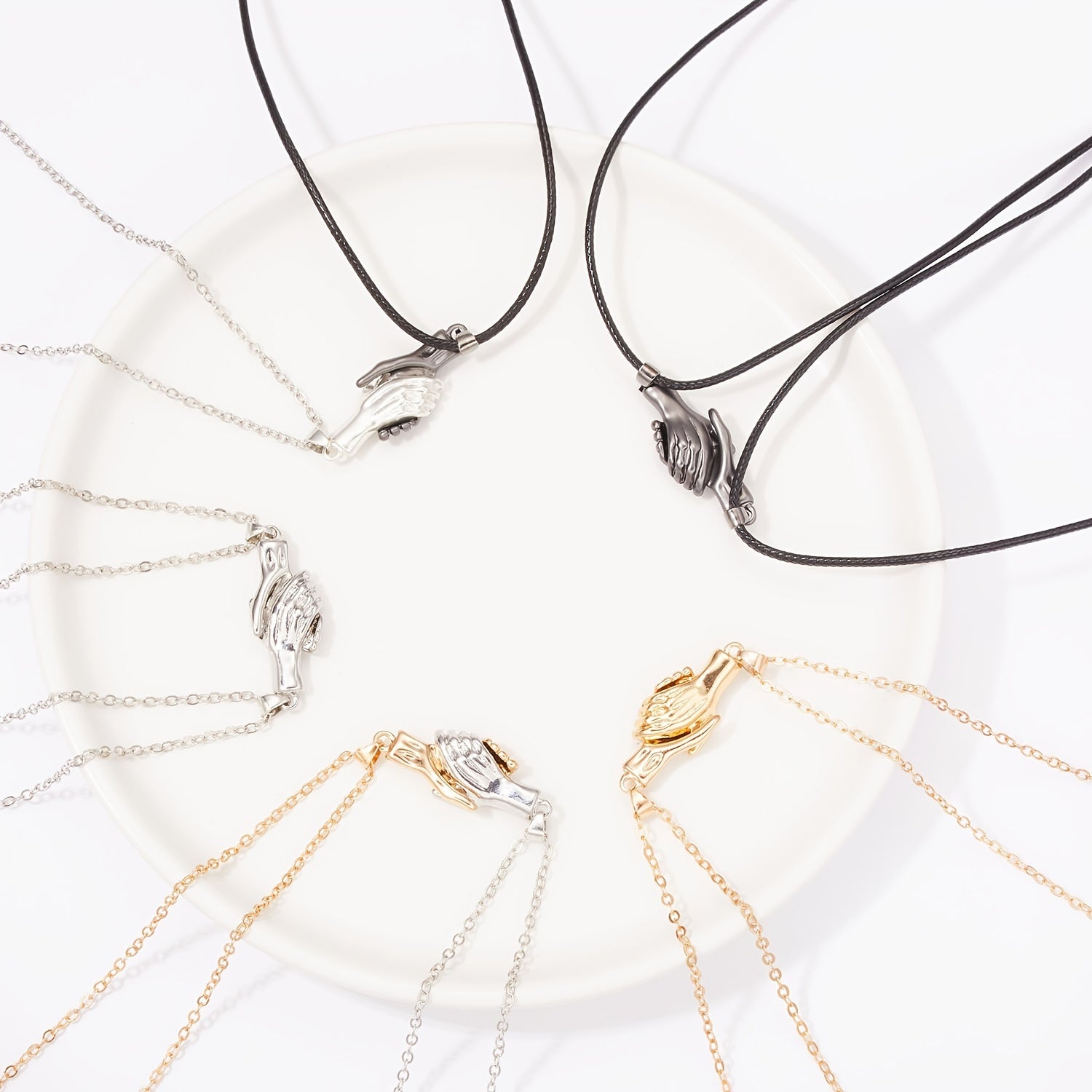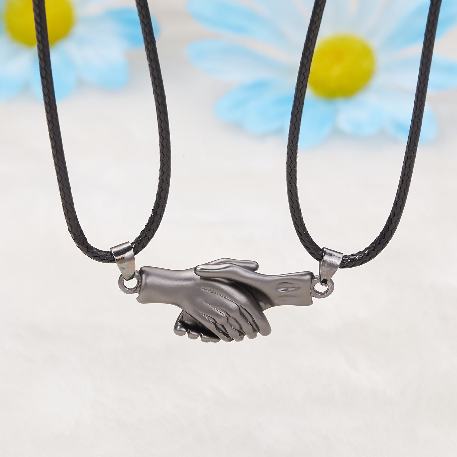 This magnetic palm men's necklace features a unique handshake design that is perfect for couples. It creates a stylish accessory that symbolizes unity and connection.