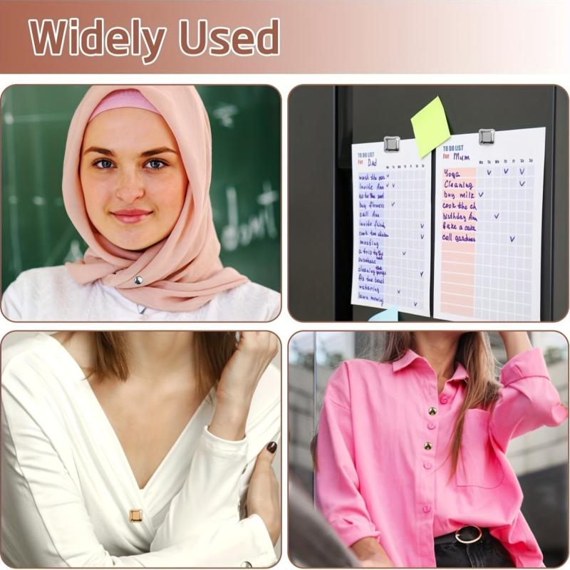 Keep your scarves in place with these stylish magnetic scarf clips. This set includes 4 pairs of round hairpin clips that are perfect for securing your scarves in place. A must-have accessory for any wardrobe.