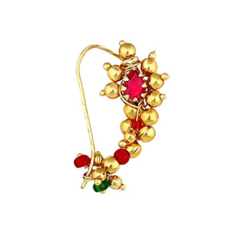 This beautiful Banu Nathiya set is a perfect accessory for Maharashtrian weddings. Made with high-quality materials, it adds a touch of elegance to any outfit.