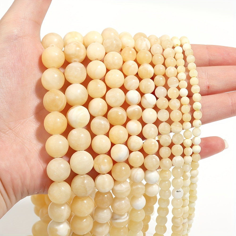 These strand maize yellow jade beads are perfect for creating bracelets, necklaces, and other jewelry pieces. Available in 4, 6, 8, 10, and 12mm sizes.