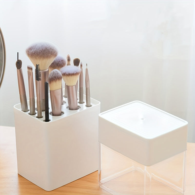 Keep your makeup brushes organized and easily accessible with this transparent organizer box. Perfect for storing loose powder brushes, eyeshadow brushes, and more on your desk or vanity. The clear design allows you to easily see and find the brush you need.
