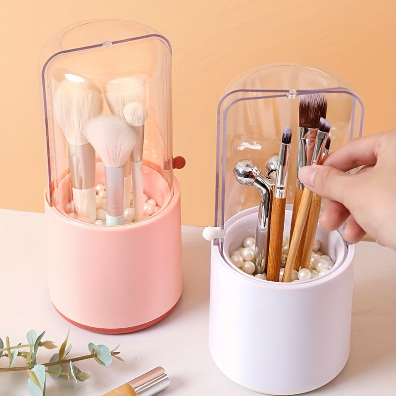 Keep your makeup tools neatly stored and organized with this transparent dustproof organizer box. It's perfect for storing brushes, eyebrow pencils, foundation brushes, and more!