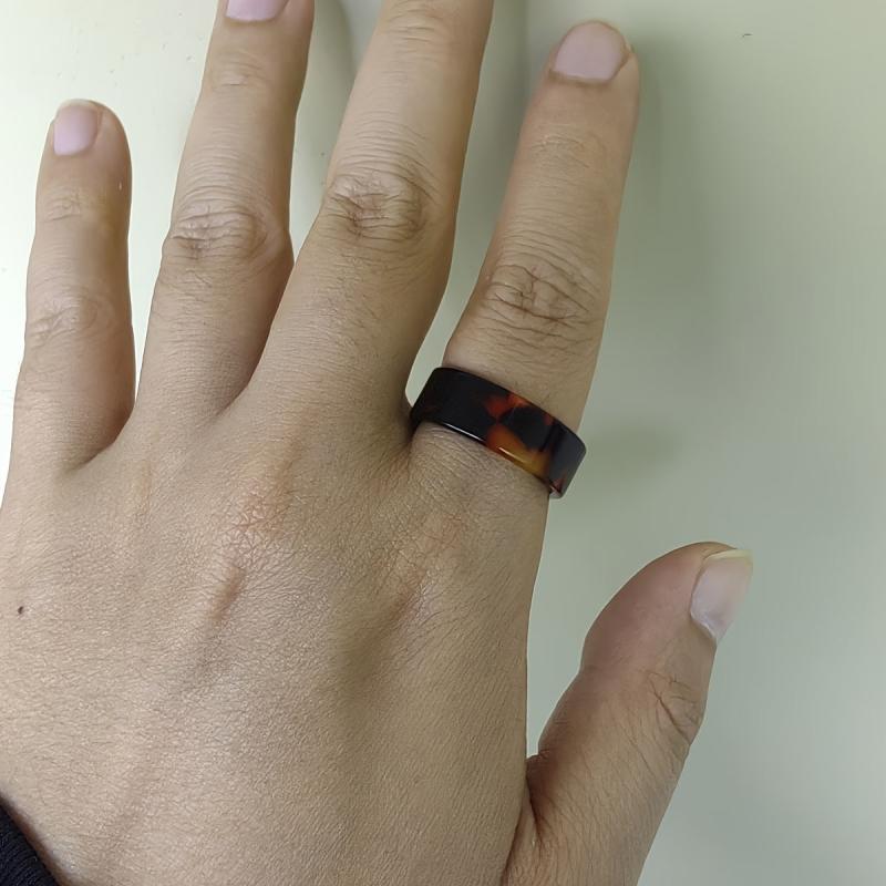 Elegant and durable resin ring featuring a stylish tortoiseshell pattern, suitable for both men and women. This 8mm wide band is lightweight and versatile, perfect for casual or formal wear.