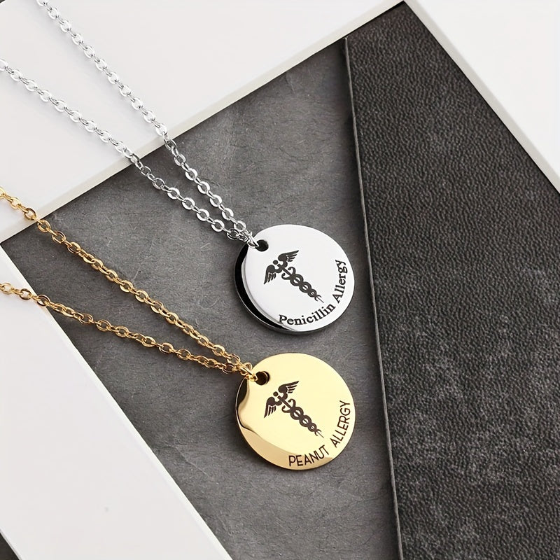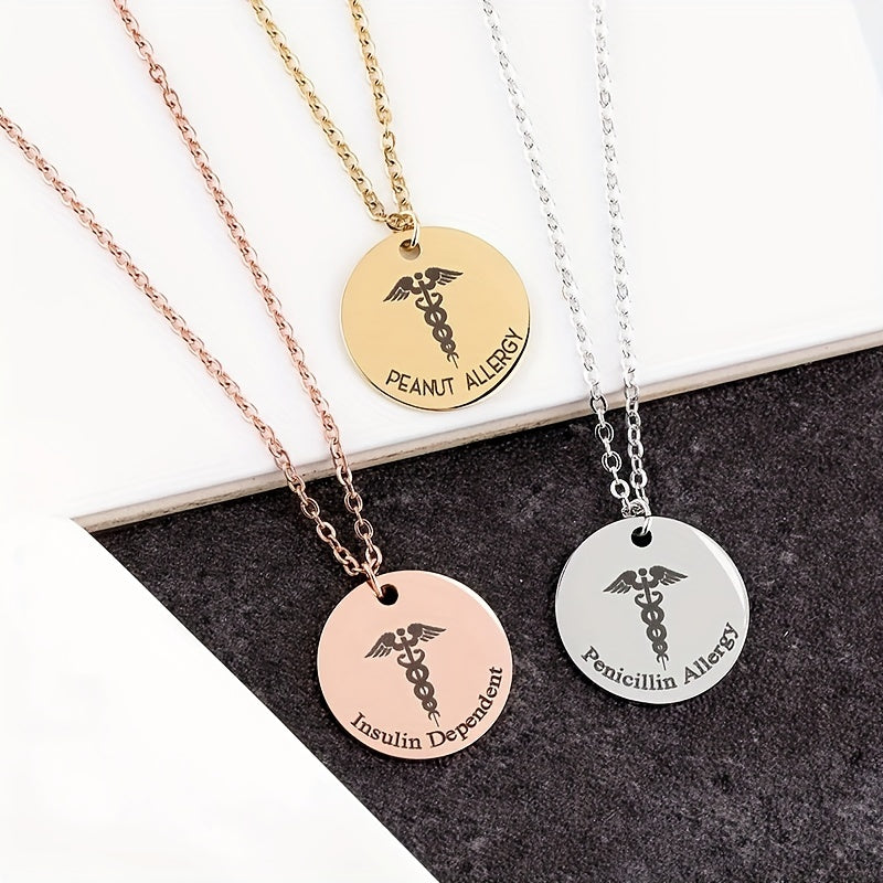 This stainless steel necklace features a snake staff and star of life round titanium pendant, perfect for medical professionals.