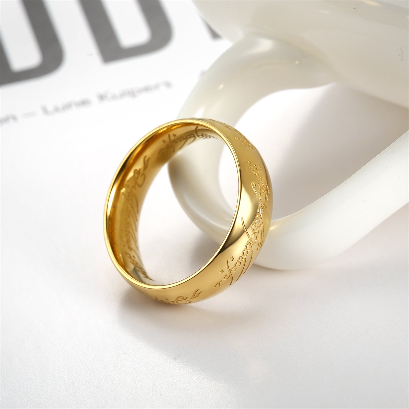 This stylish men's ring is made of high-quality titanium steel with an 18k gold plating. It features a masculine design that is perfect for everyday wear.