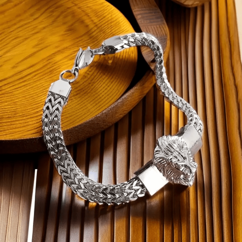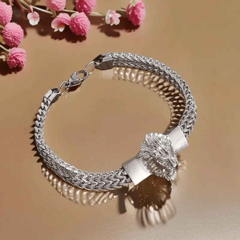 This bracelet features intricate detailing of a lion head, making it perfect for parties and concerts. It is made of durable 201 stainless steel that is rust-resistant.