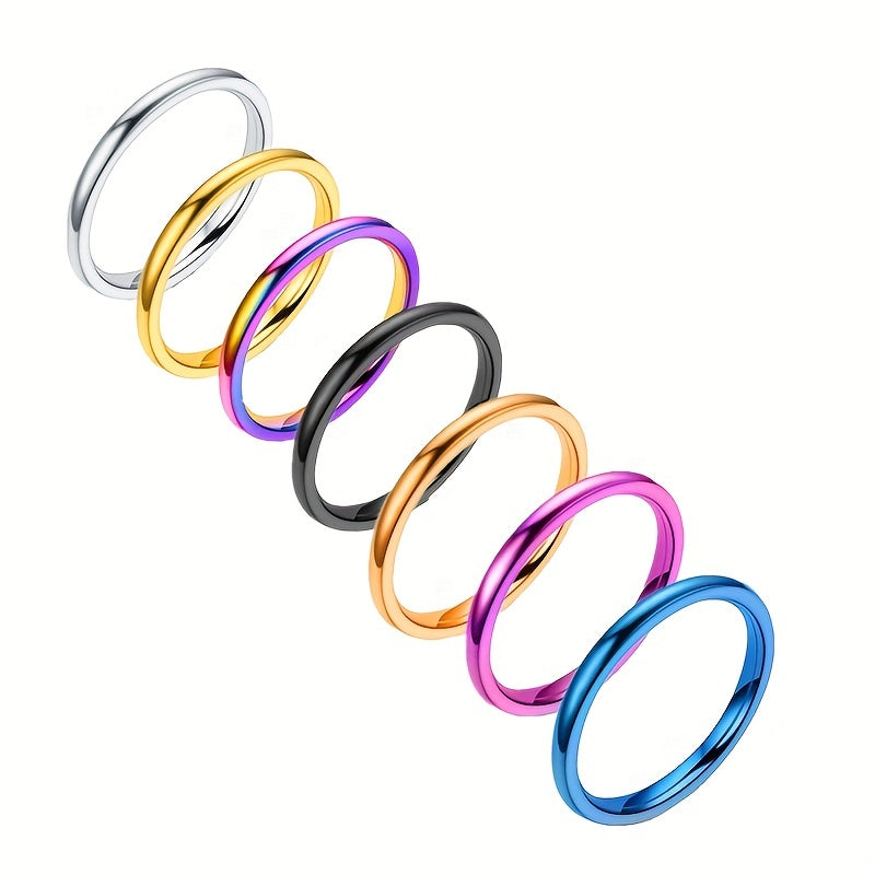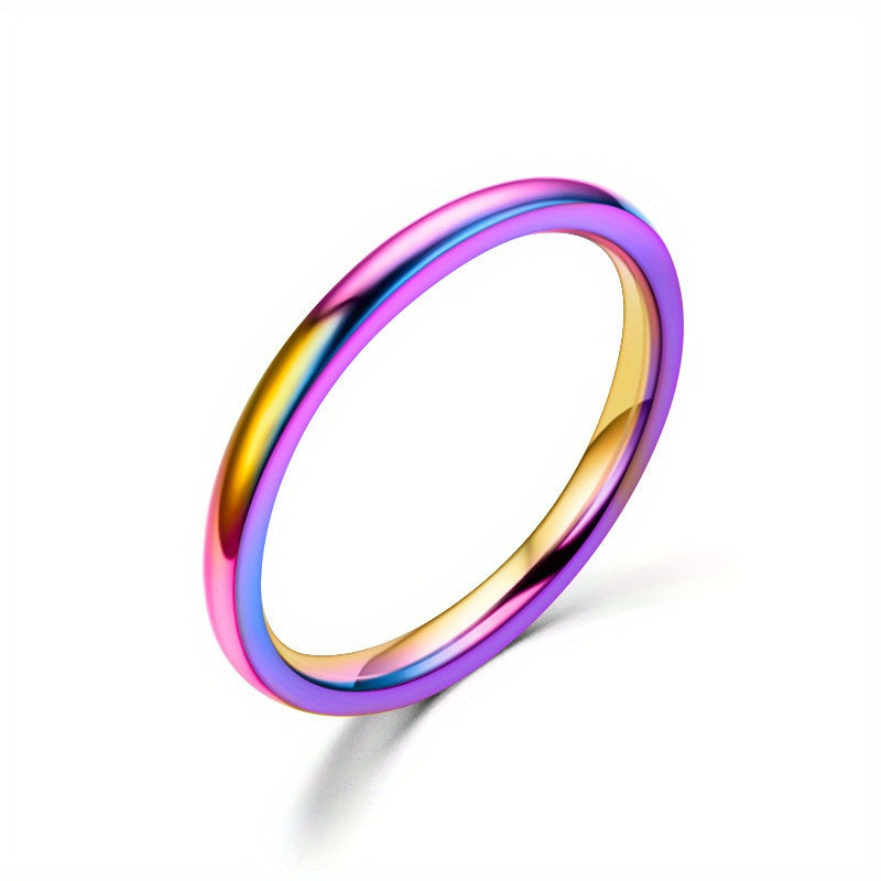 This fashionable ring features a high polished inner and outer surface. Made of stainless steel, it is durable and stylish. Available in seven colors.