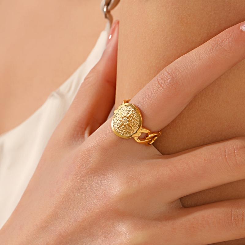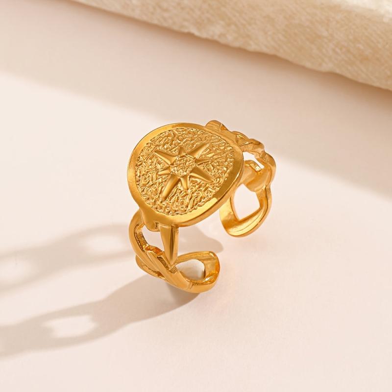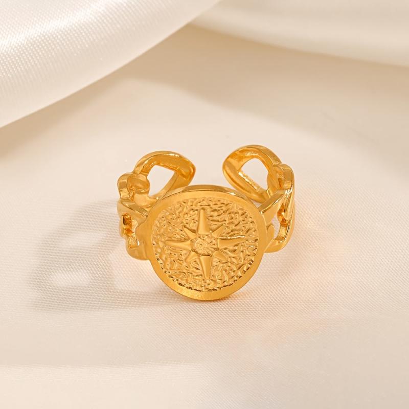 This men's ring features a minimalist eight-pointed star design in durable 304 stainless steel. The polished finish gives it a stylish look suitable for everyday wear or as a holiday gift for him.