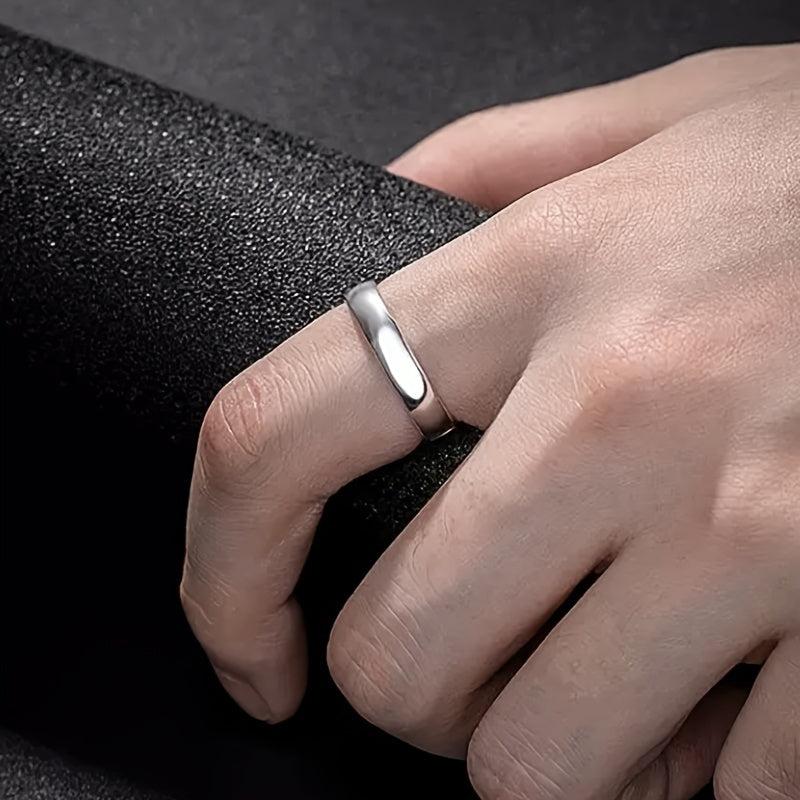 This men's wedding band ring features a 4mm width, perfect for all seasons and holidays. Made of stainless steel, this ring is durable and ideal for everyday wear or as a gift.