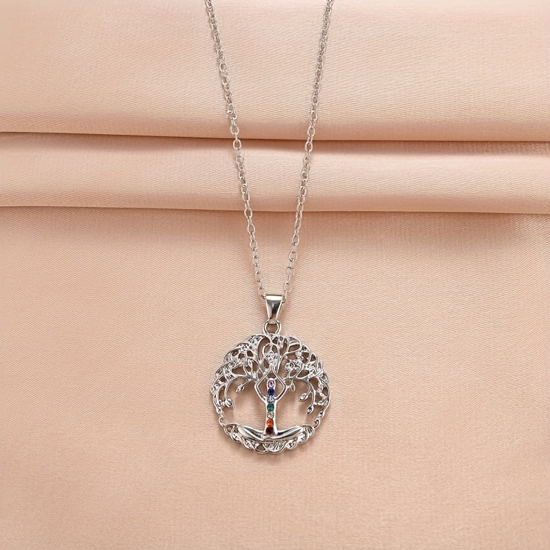This pendant necklace features the Seven Chakras Tree Of Life design, perfect for couples. It makes a thoughtful gift for Thanksgiving, Christmas, or birthdays.