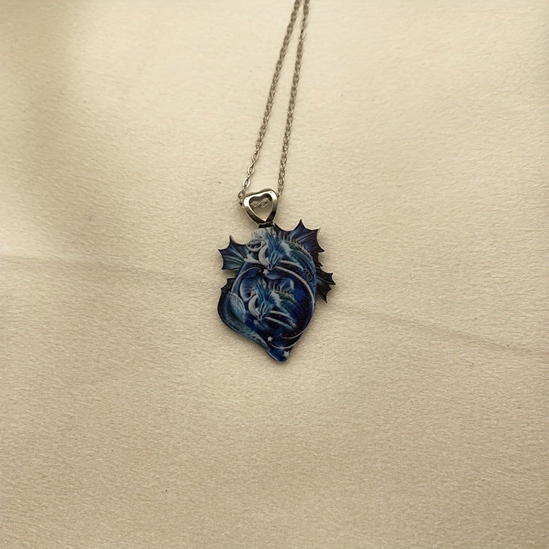 This men's necklace features a creative acrylic heart dragon pendant that adds a unique touch to any outfit. It is a perfect decorative accessory and makes a great holiday gift for boys.