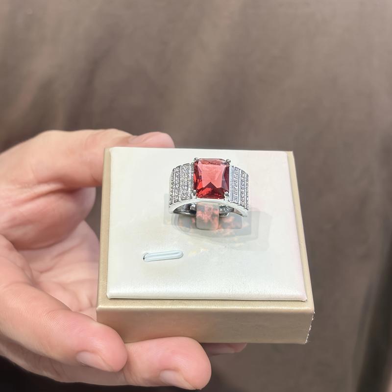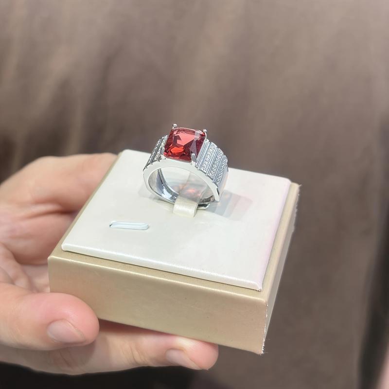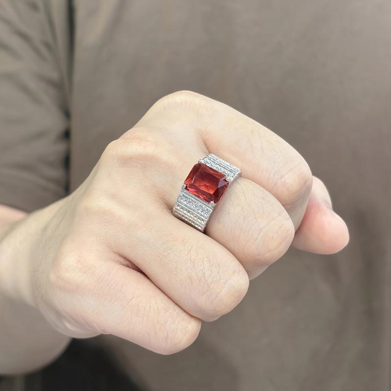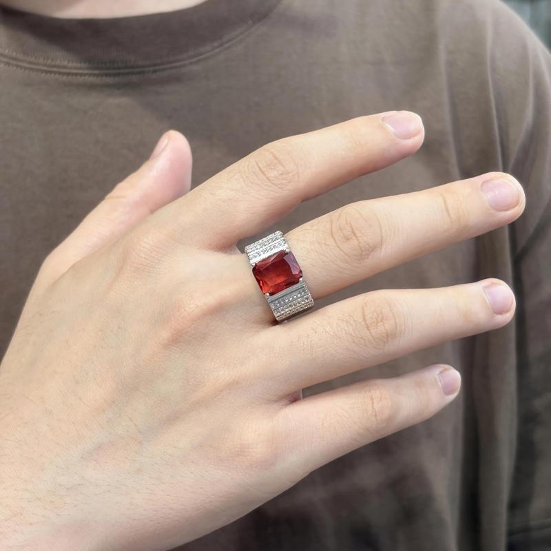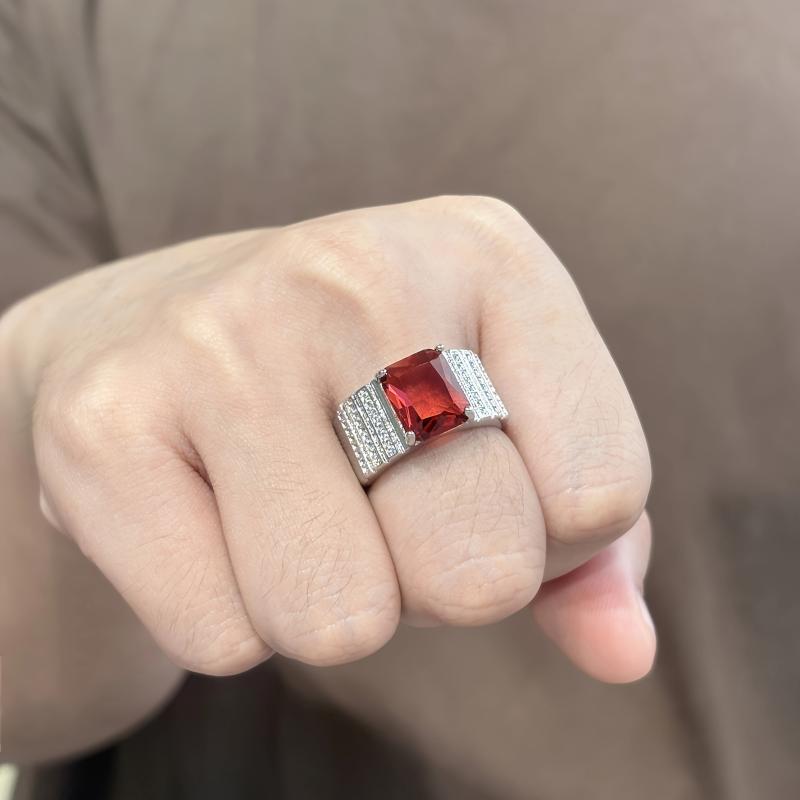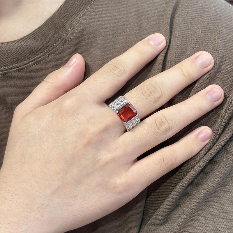 Men's Adjustable CZ Eternity Ring with Red Accent