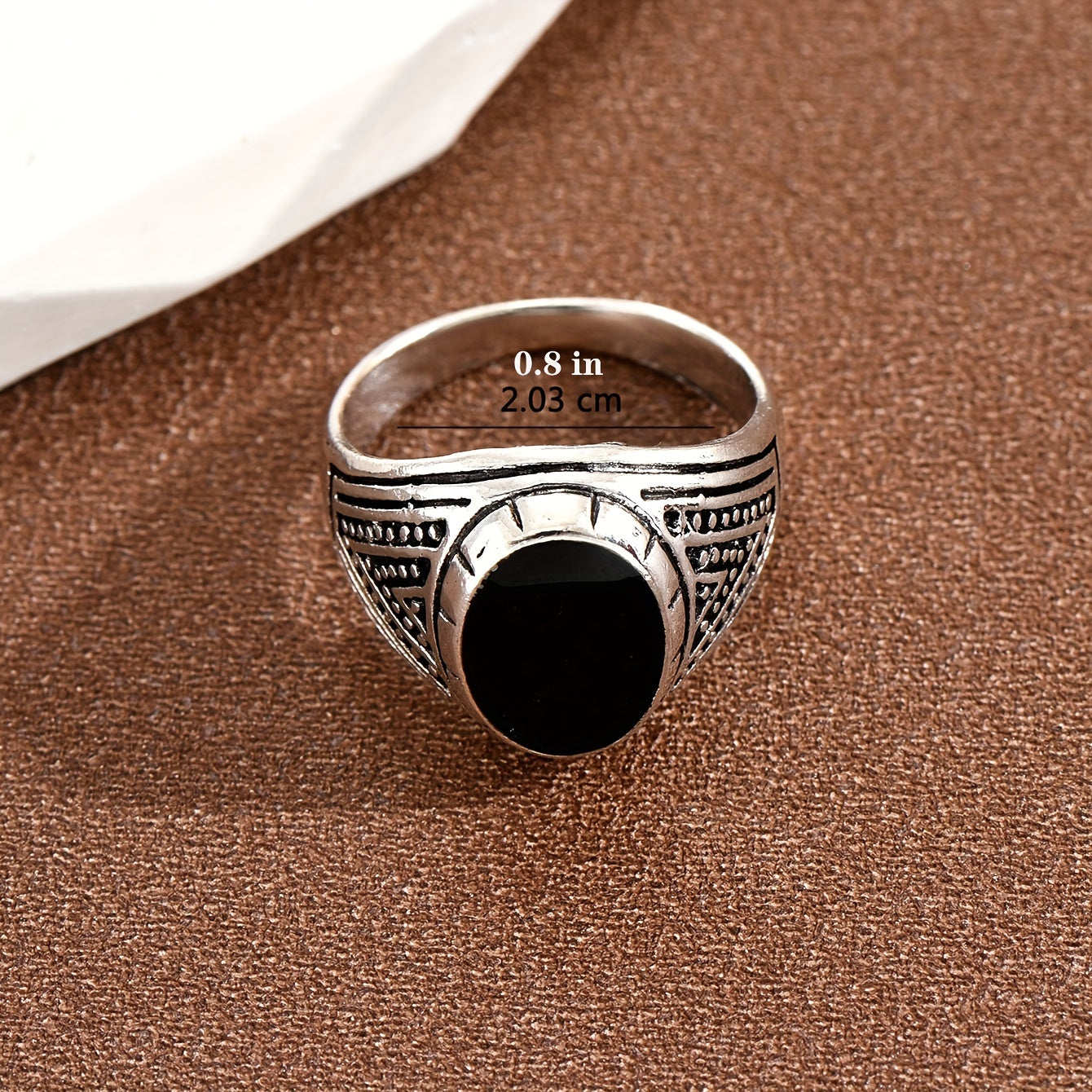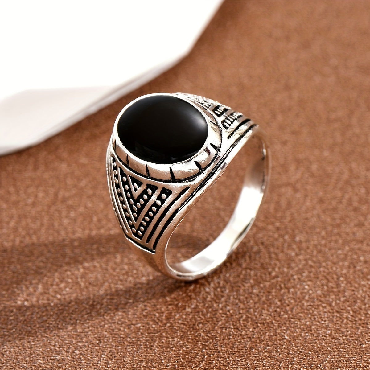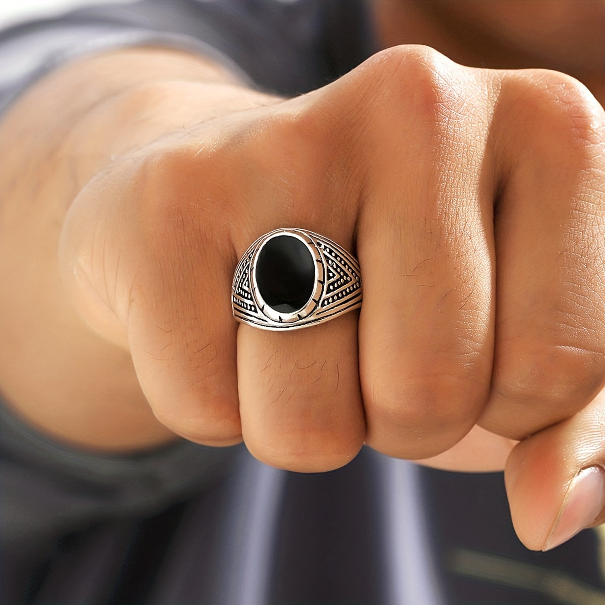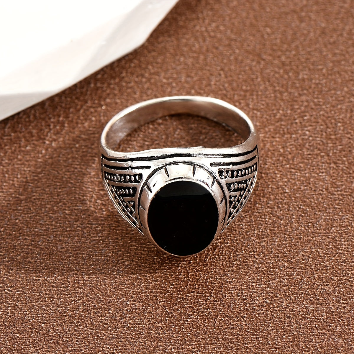 This men's alloy ring features a hip hop style design with glass inlays. It is a retro single item accessory that adds a cool and stylish touch to your look.
