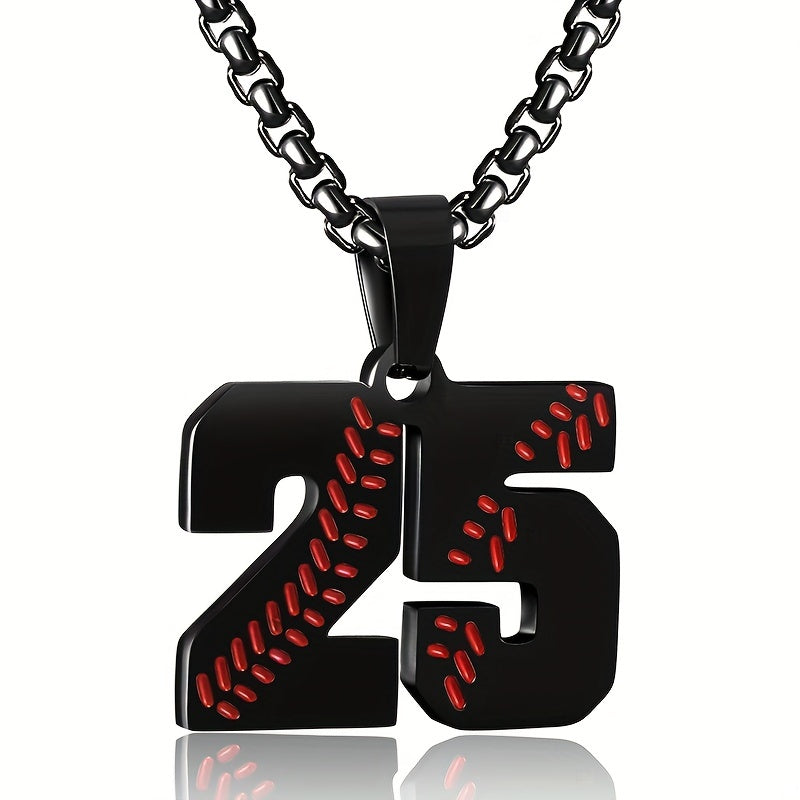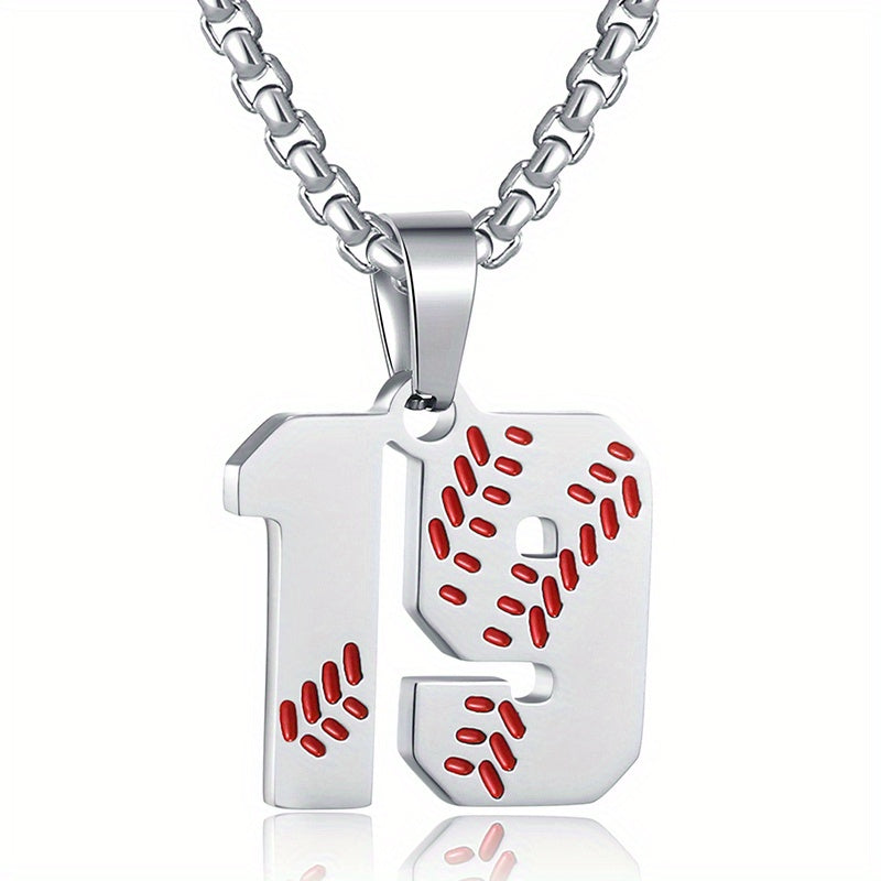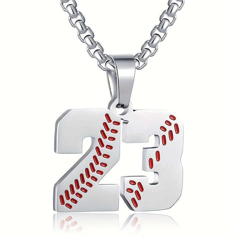 This pendant necklace is perfect for baseball lovers. It features a baseball player jersey number pendant on a silver-plated chain.