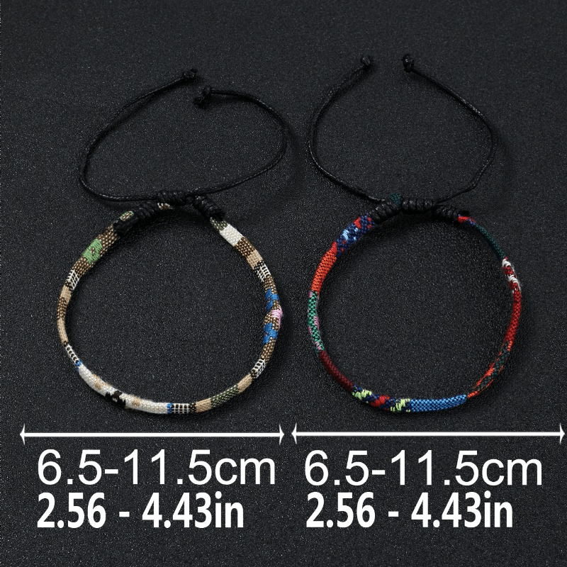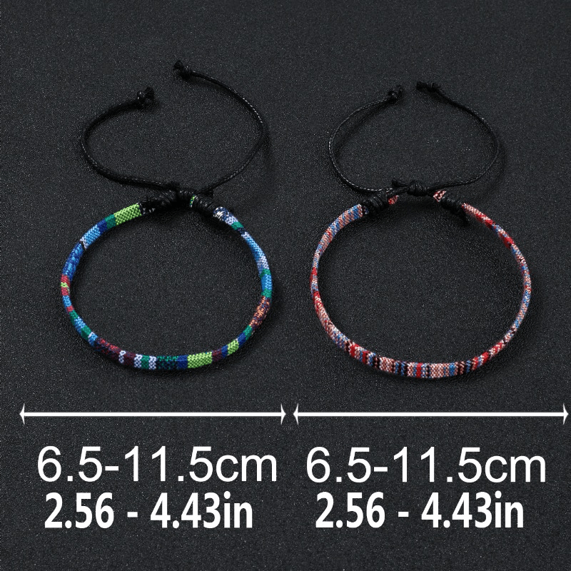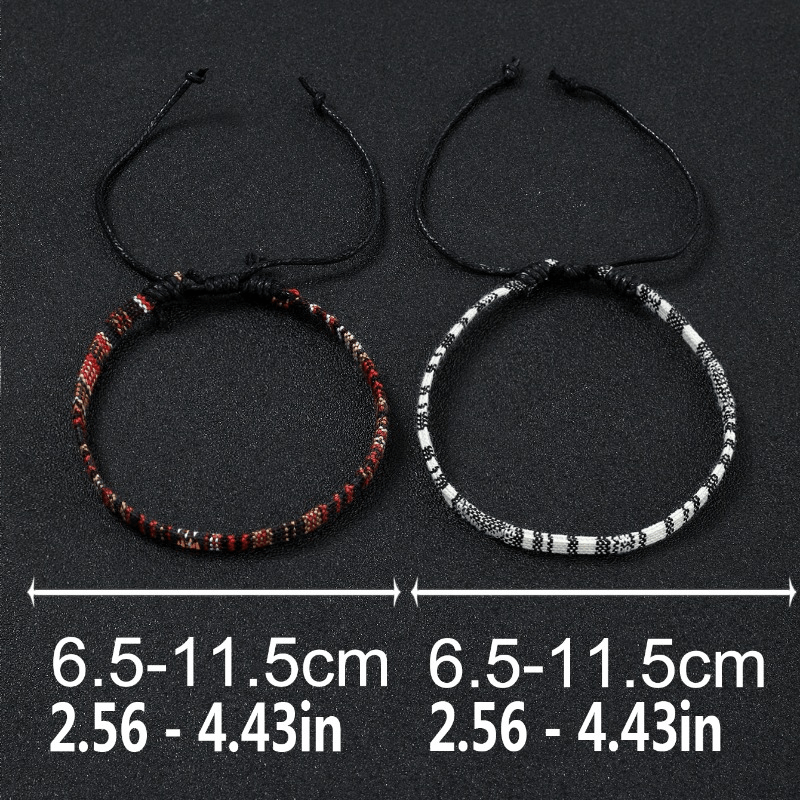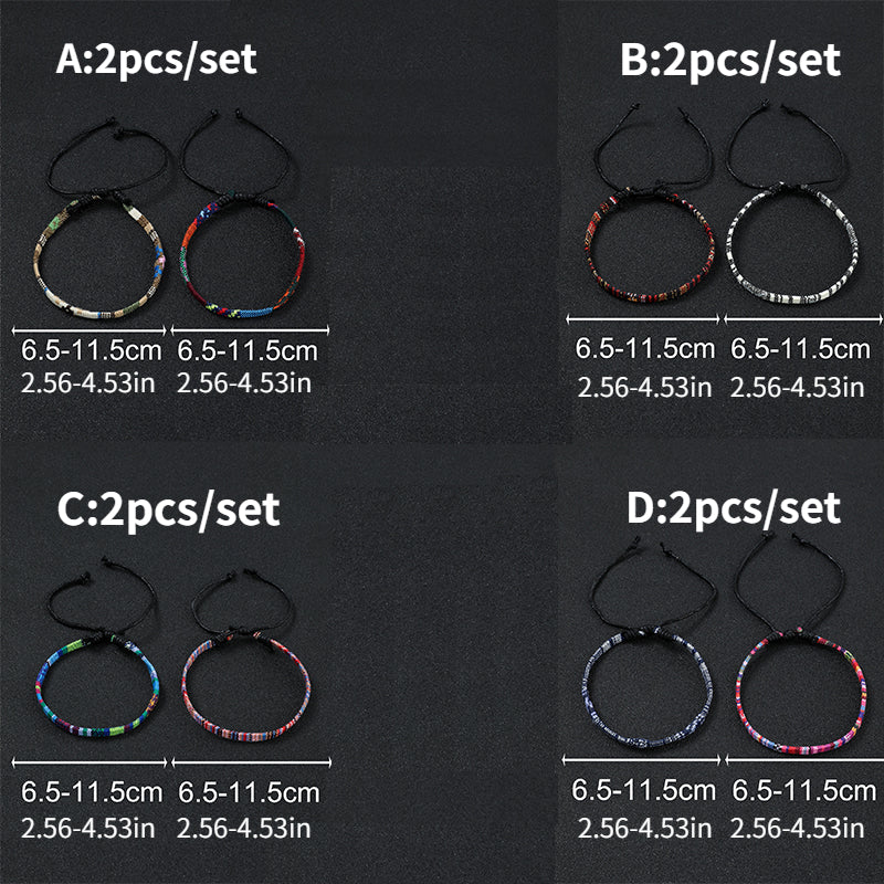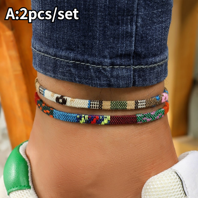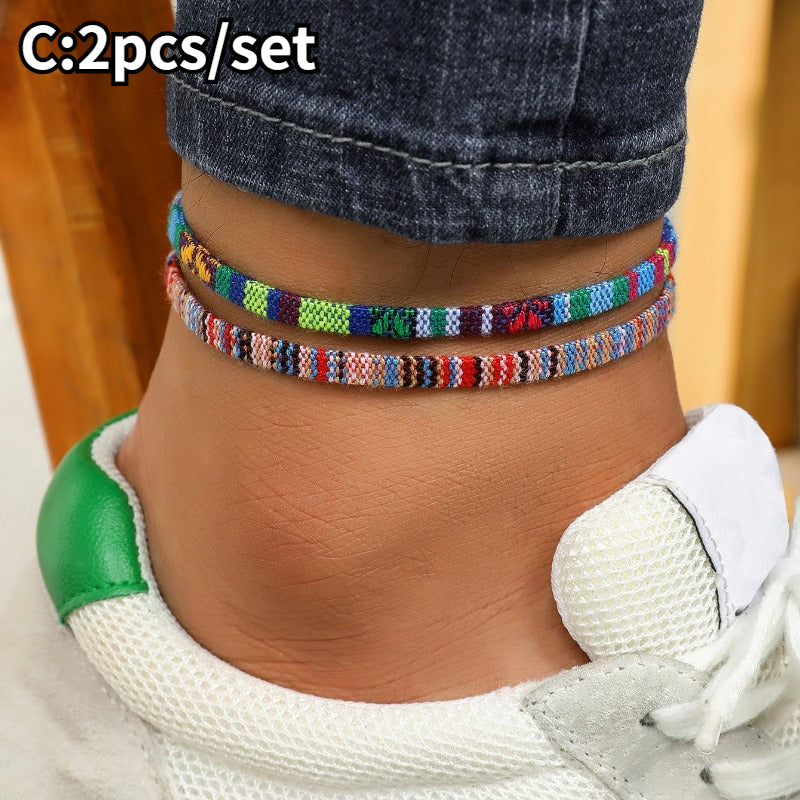 Enhance your style with this unique 2-piece anklet set featuring block rainbow braided design.
