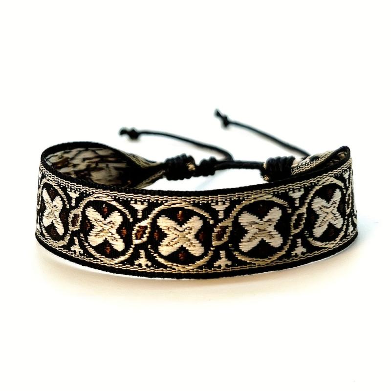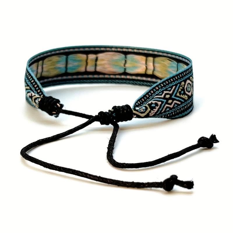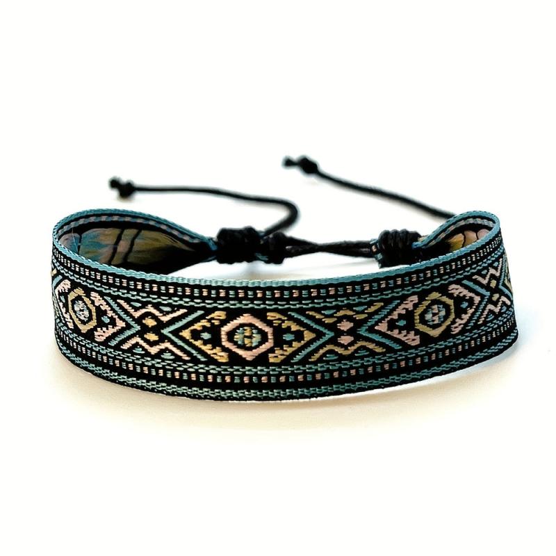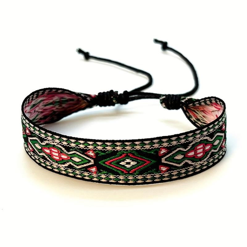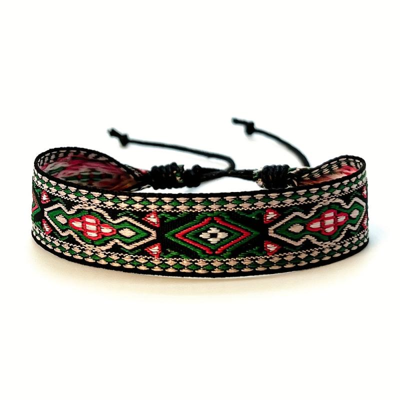 Elevate your style with this bohemian retro tribal bracelet featuring vibrant geometric patterns and a beaded tassel charm. Perfect for both casual and party occasions.