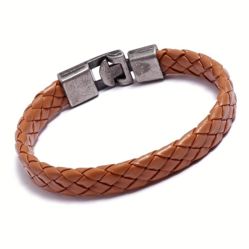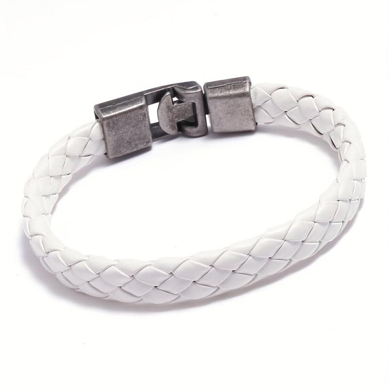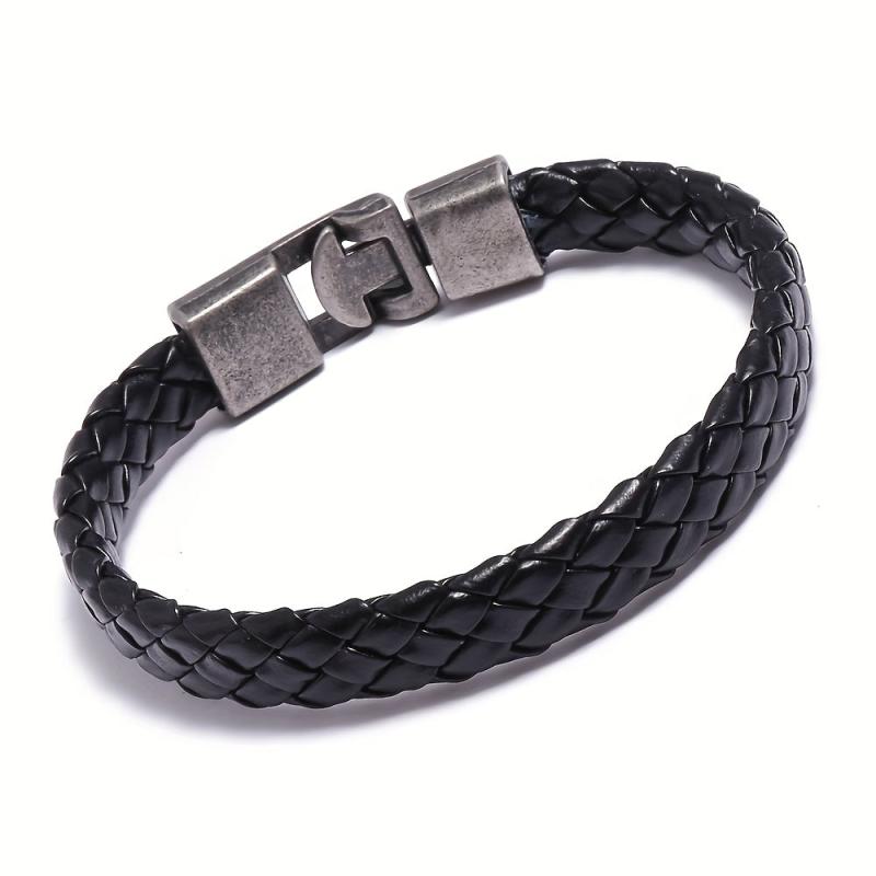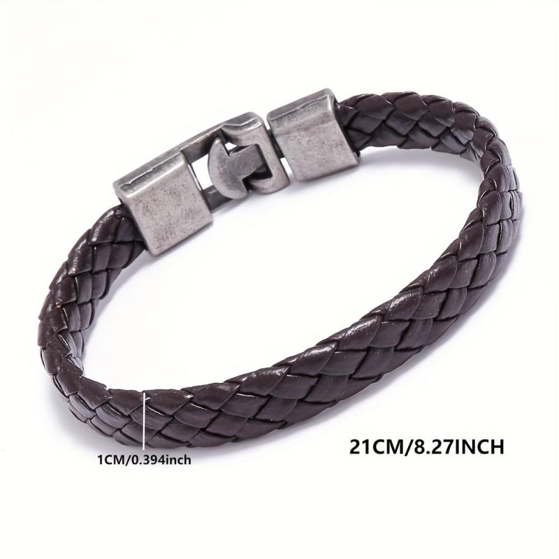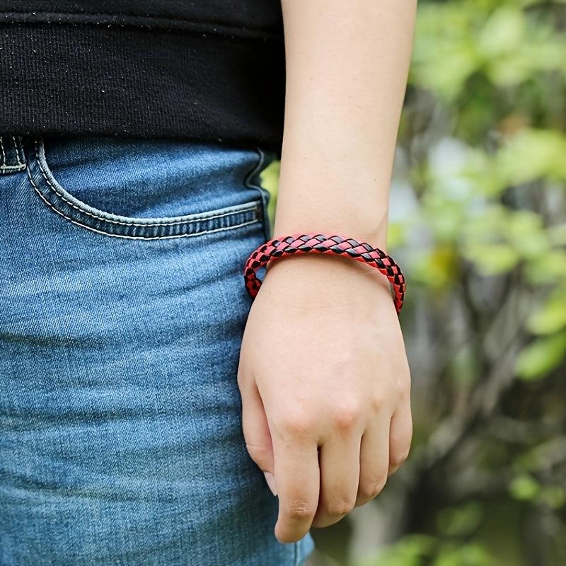 Add a touch of punk-inspired style to your casual attire with this stylish braided faux leather bracelet. Perfect for parties and everyday wear, this durable accessory features a red block accent for a pop of color.