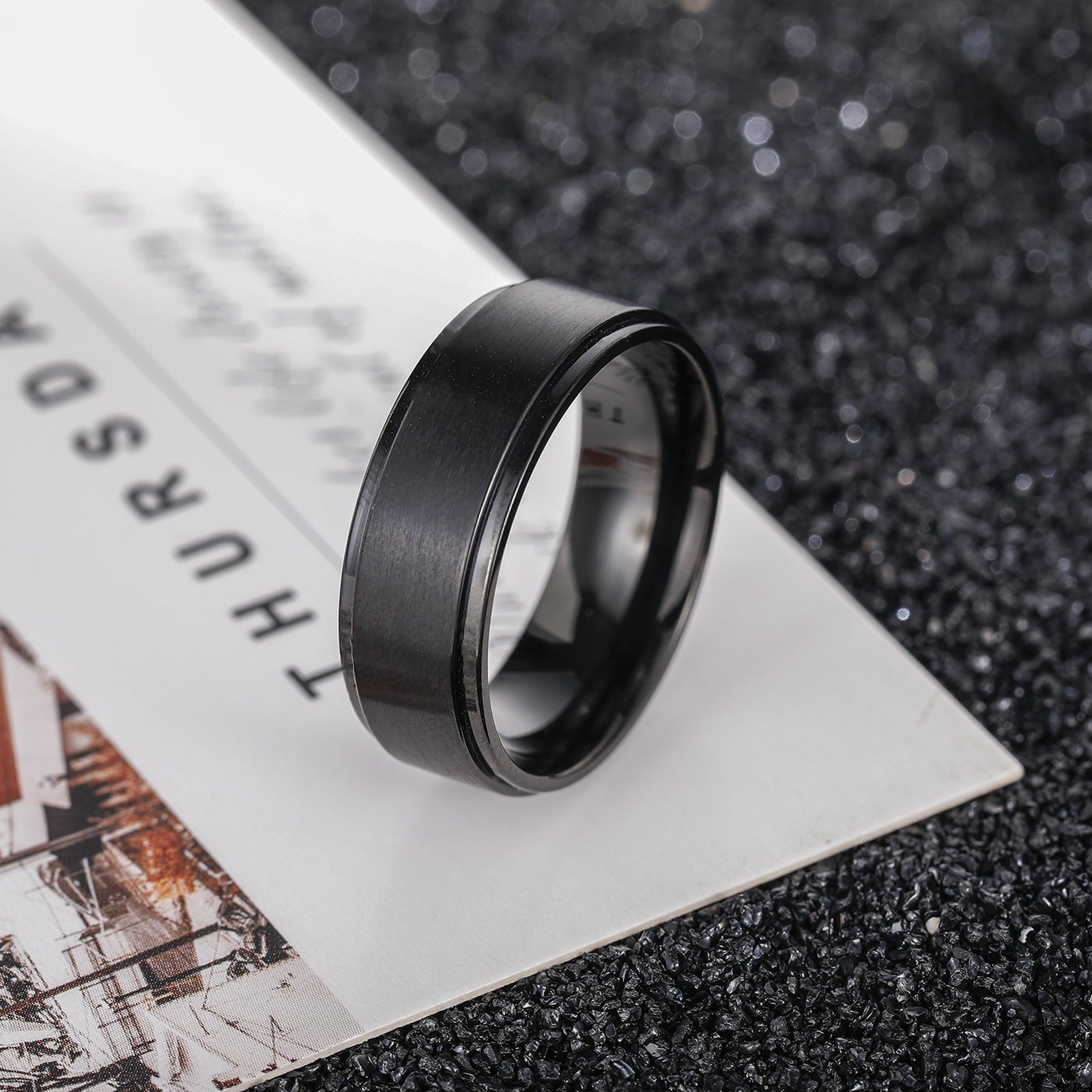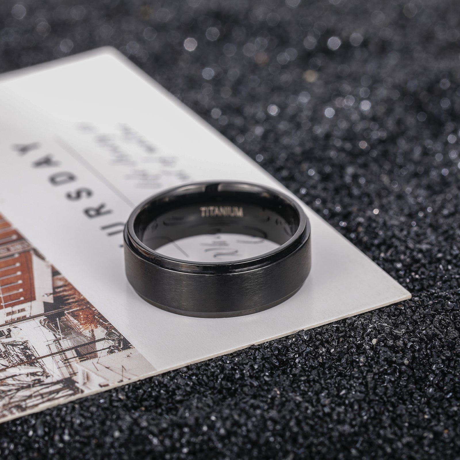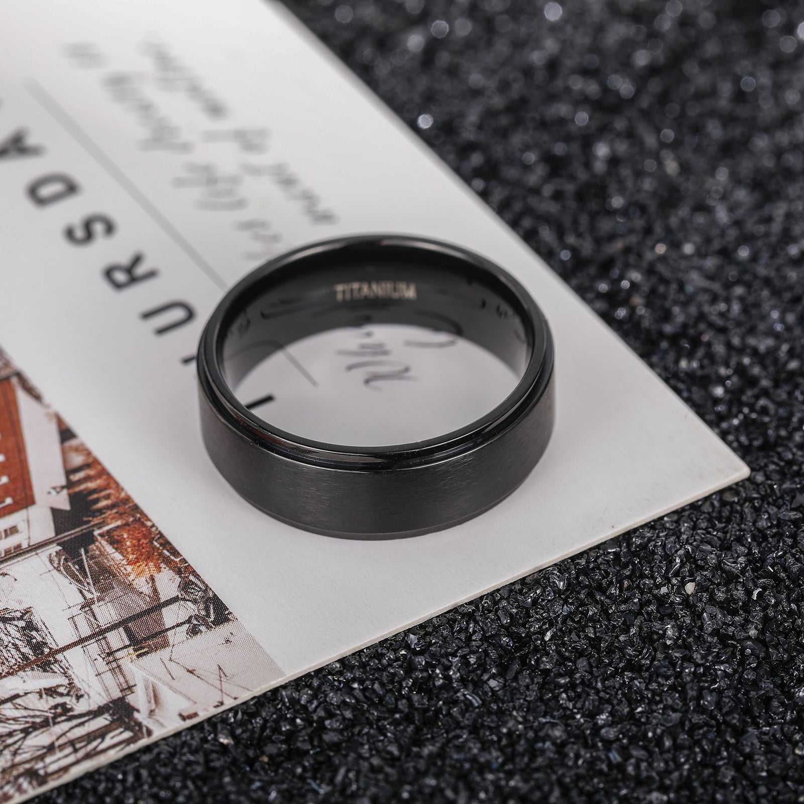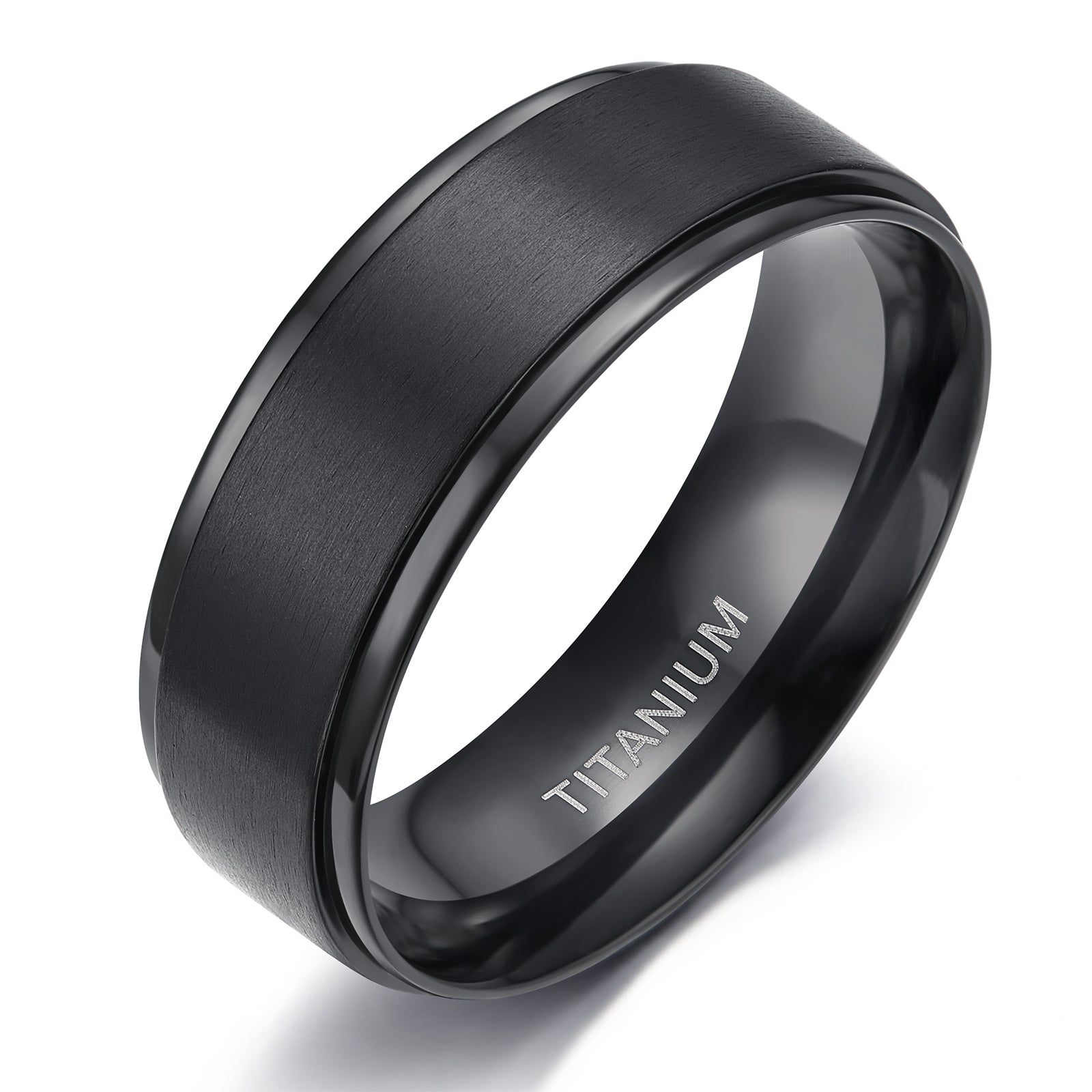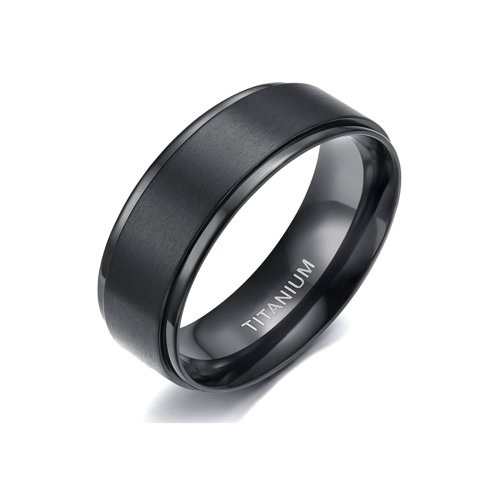 This men's ring is made of smooth titanium with a brushed finish, combining style and durability.