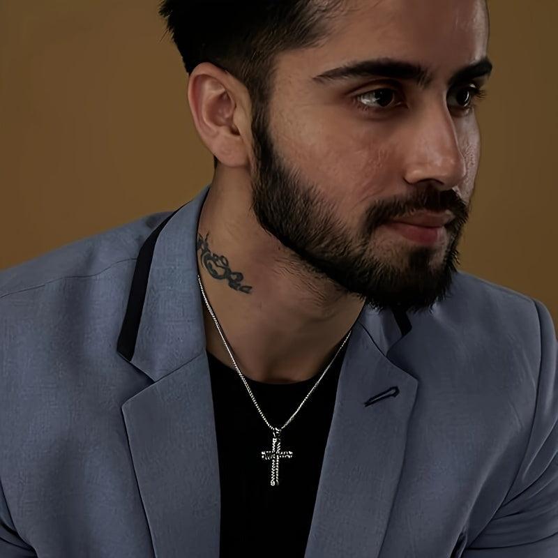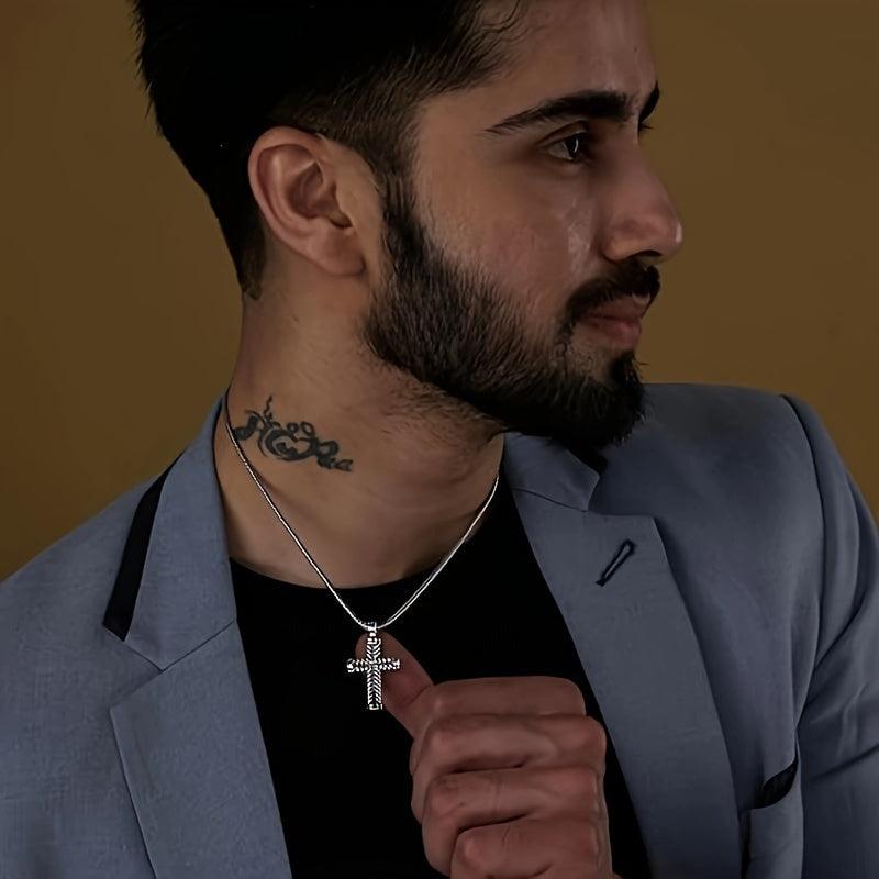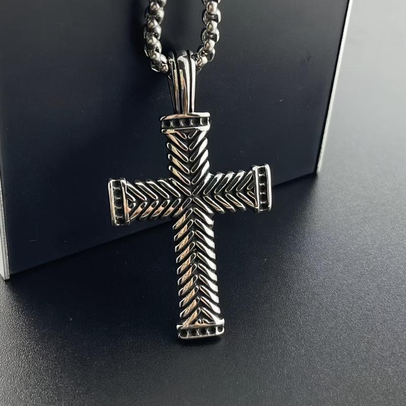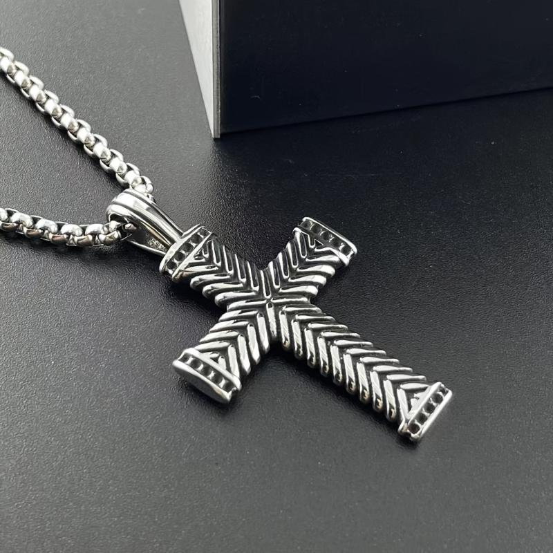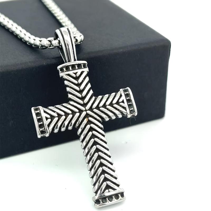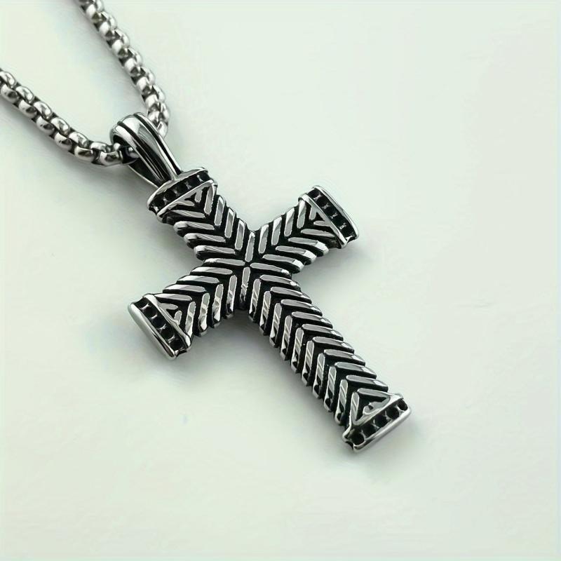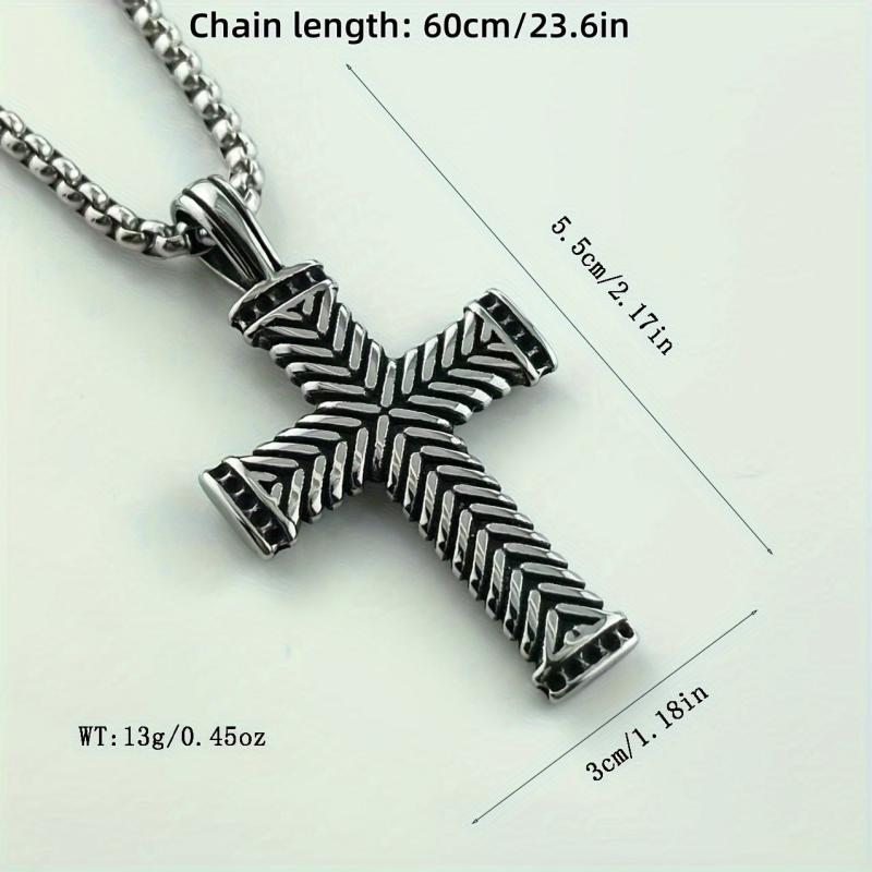 This solid cross pendant necklace features an adjustable antique chain style made of high-quality 316L stainless steel with titanium steel body. Ideal as a jewelry accessory for men.