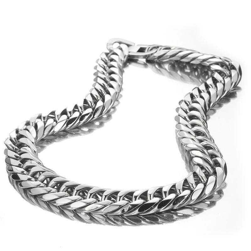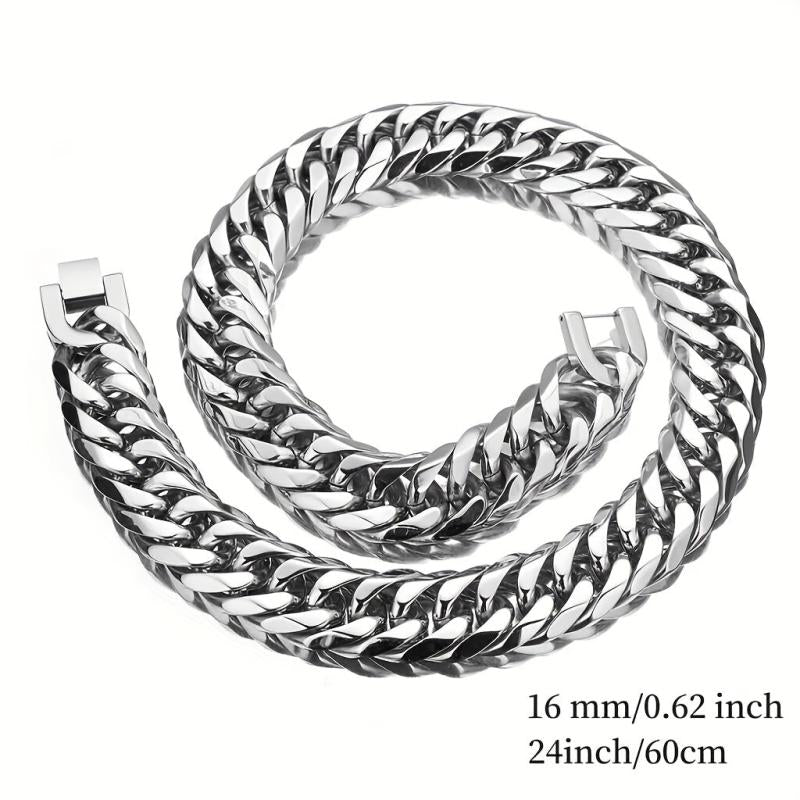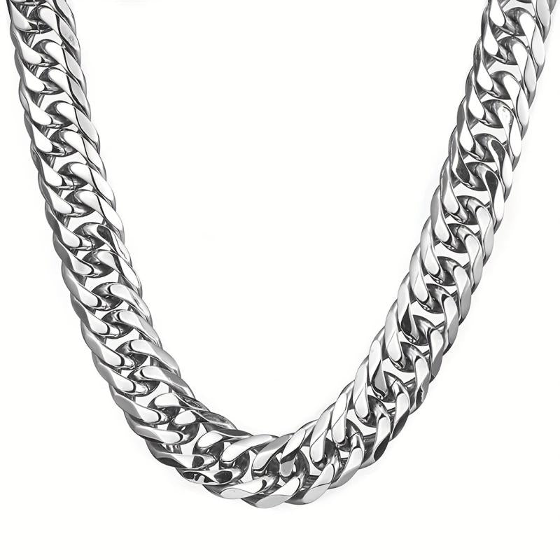Upgrade your style with this heavy-duty silvery stainless steel necklace that exudes rap style vibes. The 16mm thick Cuban chain design adds a bold statement to your jewelry collection.