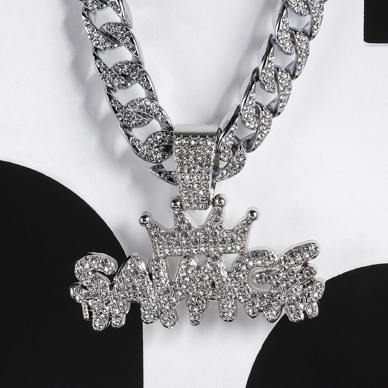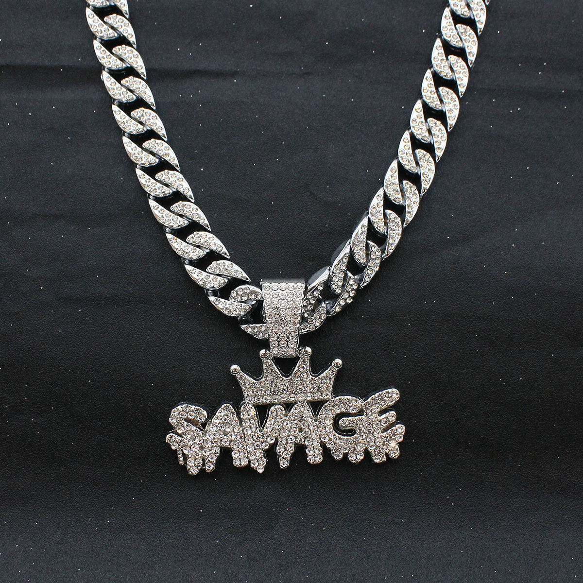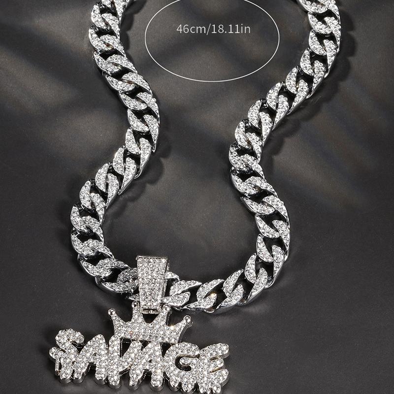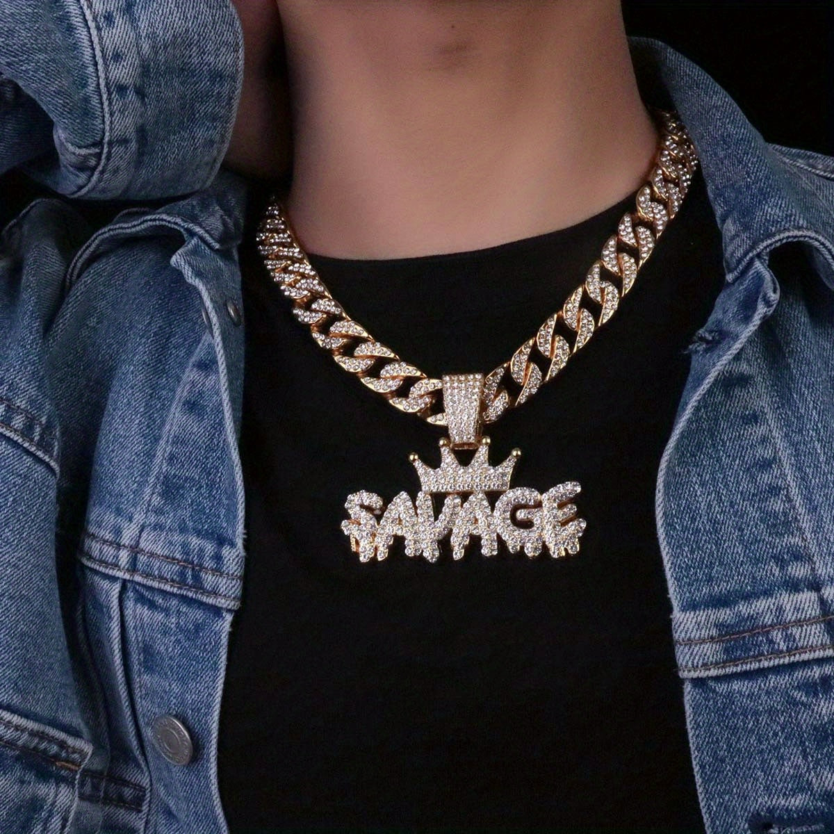 Elevate your style with this men's Cuban necklace featuring a bold SAVAGE pendant. Perfect for adding attitude to your look.