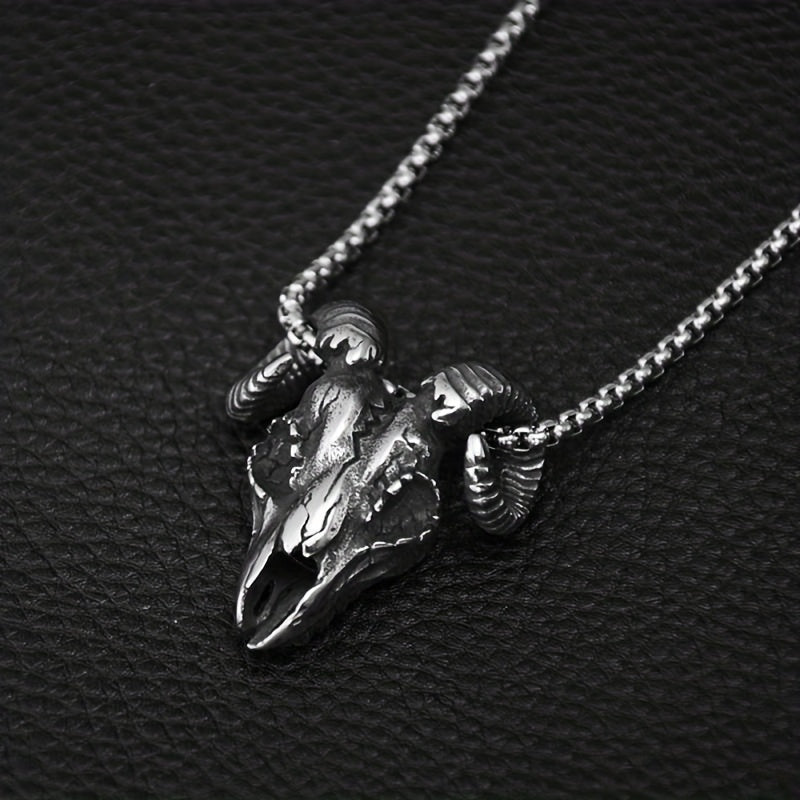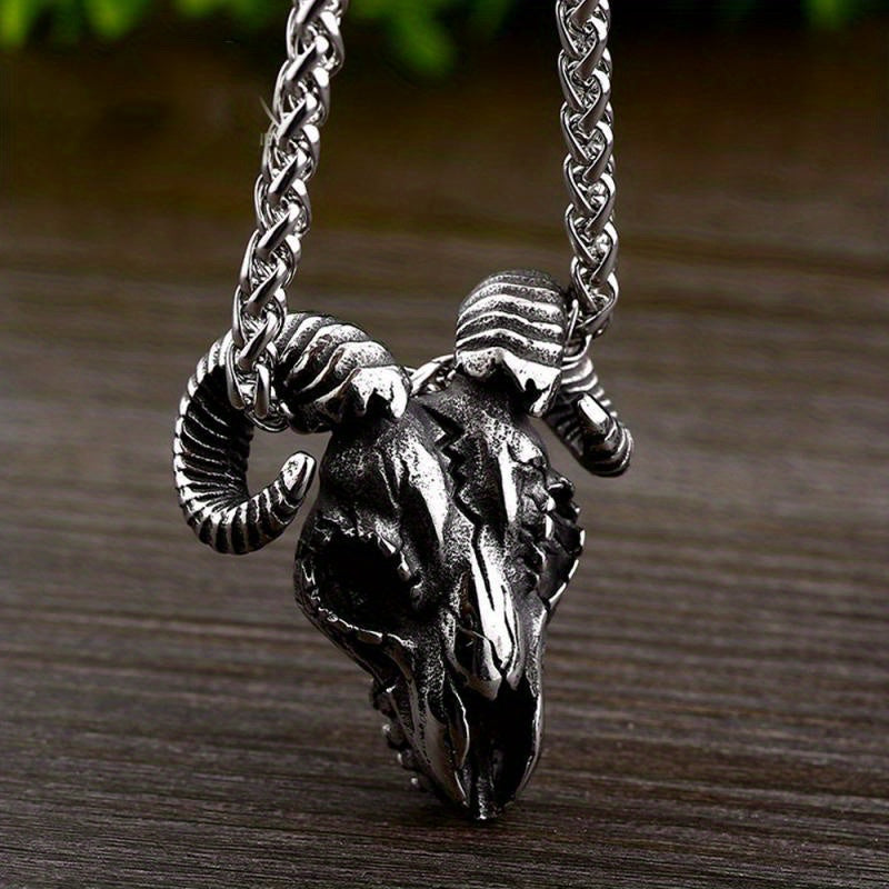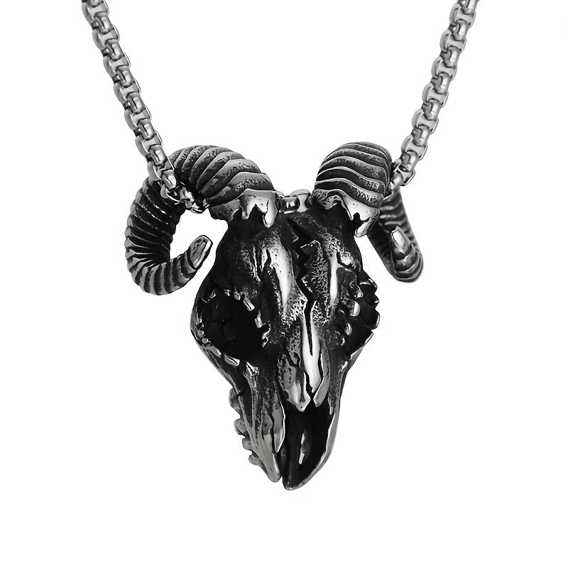Add a touch of edgy style to your outfit with this vintage demon sheep head skull pendant necklace. Perfect for parties, this gothic punk accessory is a great gift for men.