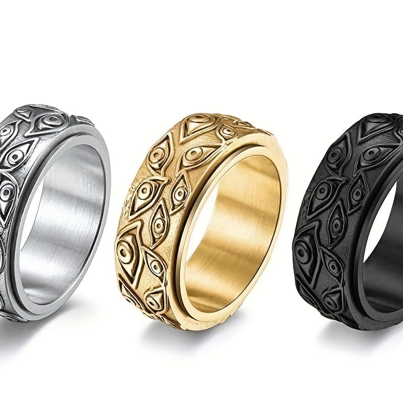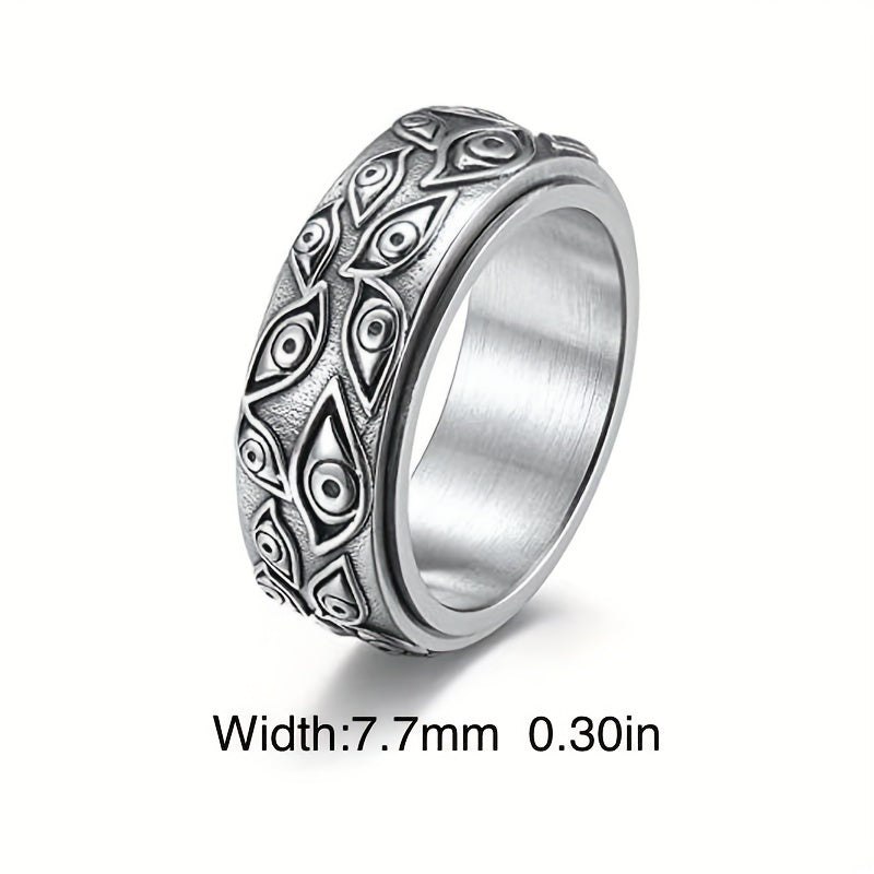 This retro-style stainless steel ring features devil's eyes design that can be rotated for a unique look. Perfect for anyone looking for a fashionable and fun accessory that also provides a stress-relief element.