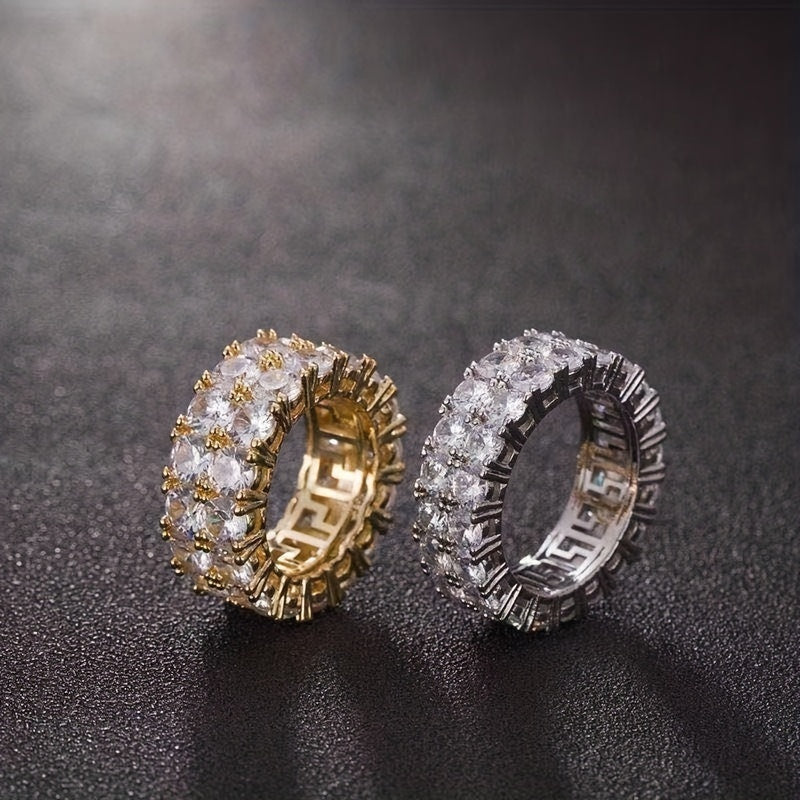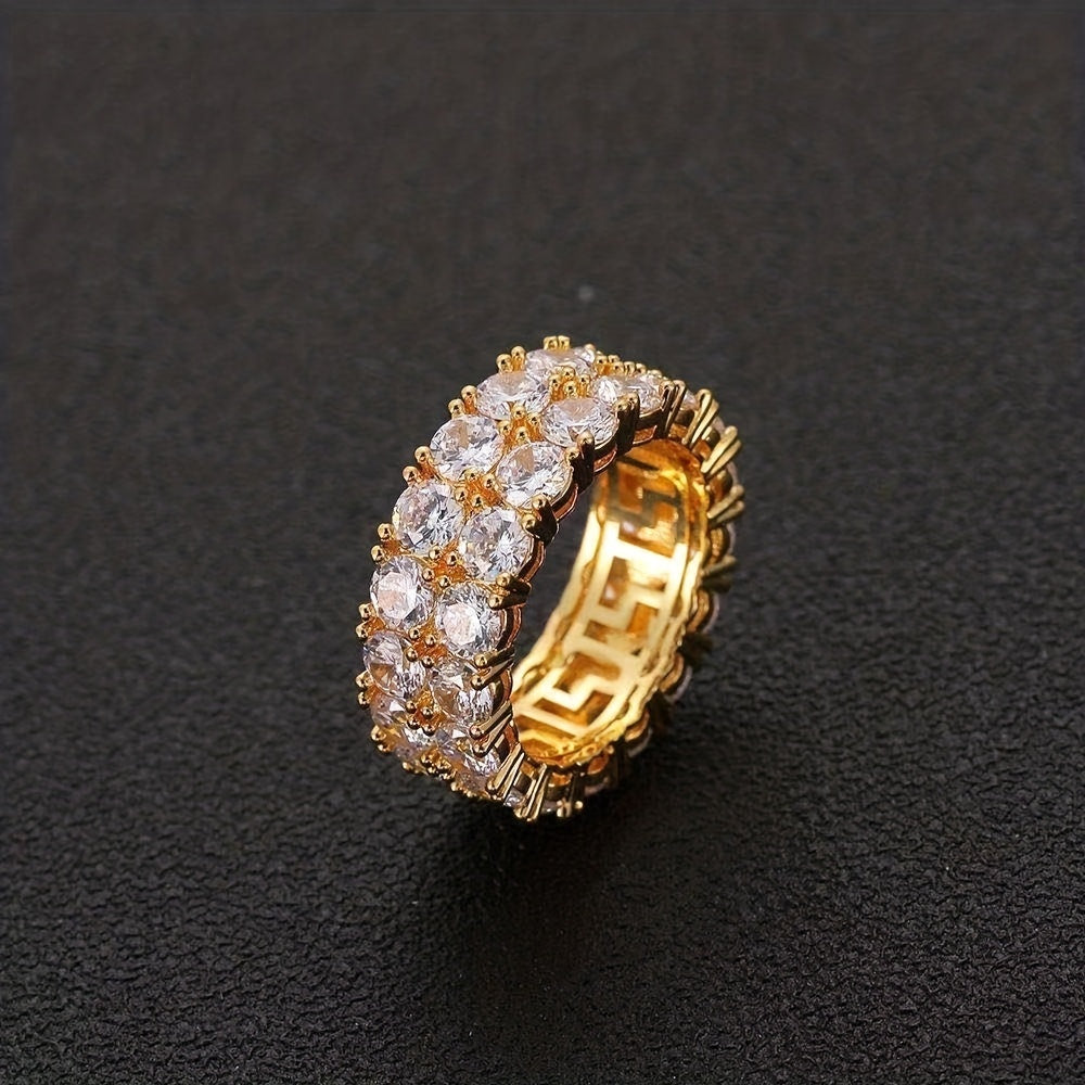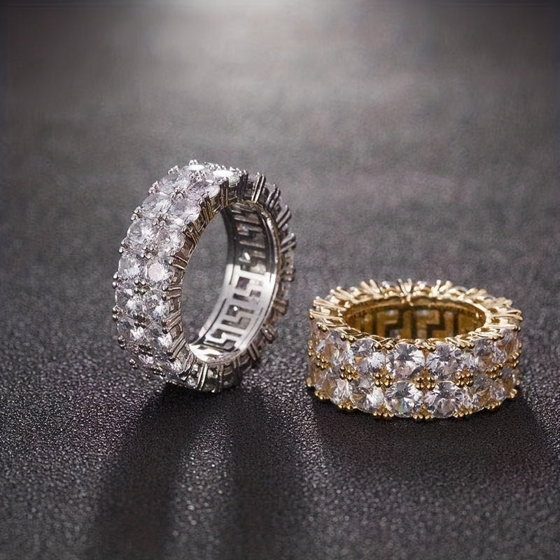 Add a touch of vintage glam with this hip hop punk ring featuring double rows of rhinestones. Perfect for adding style to any outfit.