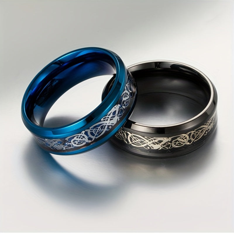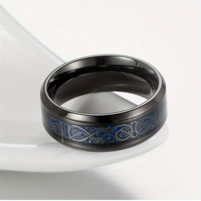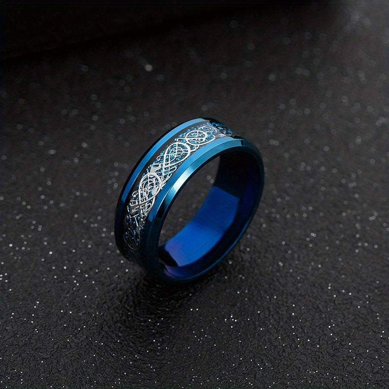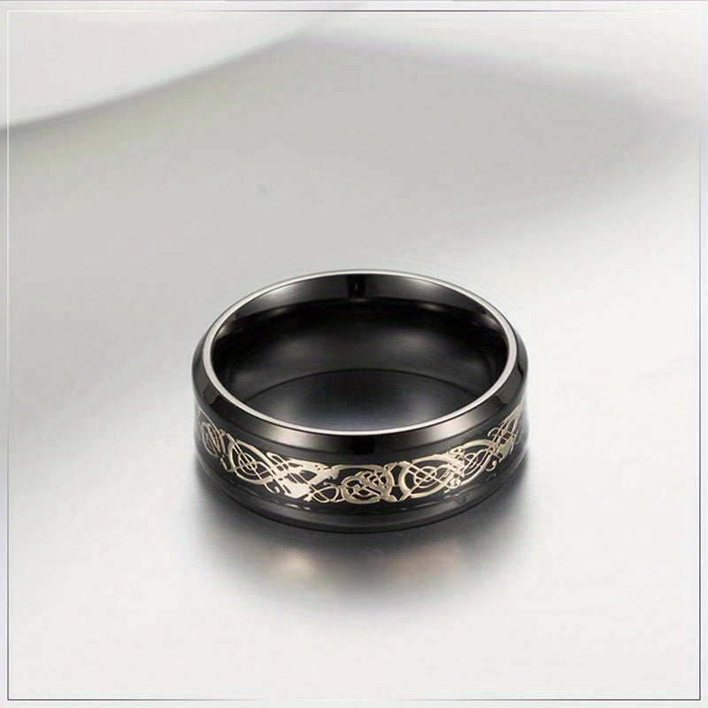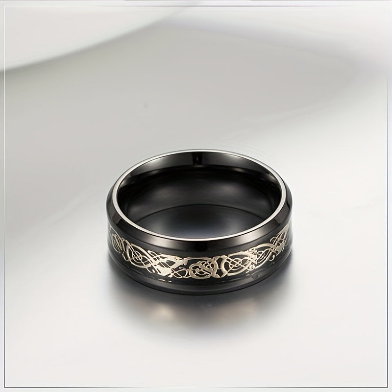 This men's ring features a dragon pattern design with dragon pieces, crafted from durable stainless steel for a bold and stylish look.