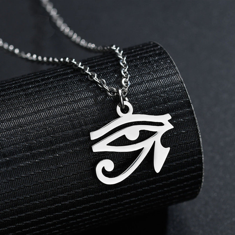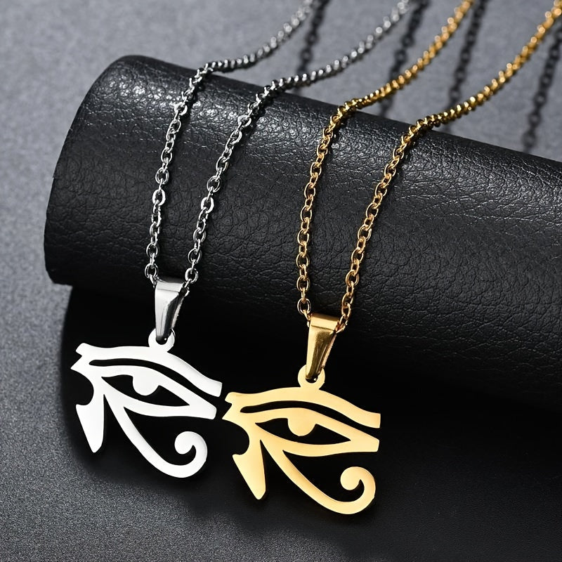 This pendant features the ancient Egyptian Pharaoh's Eye of Horus design. Crafted from stainless steel, this necklace is a stylish accessory for men.