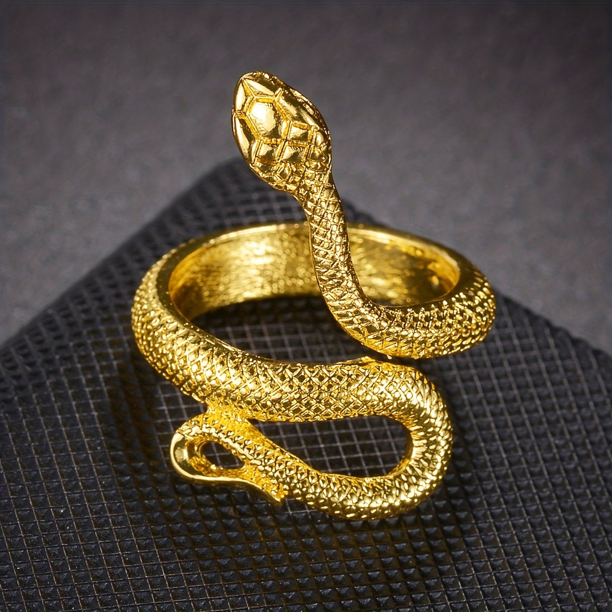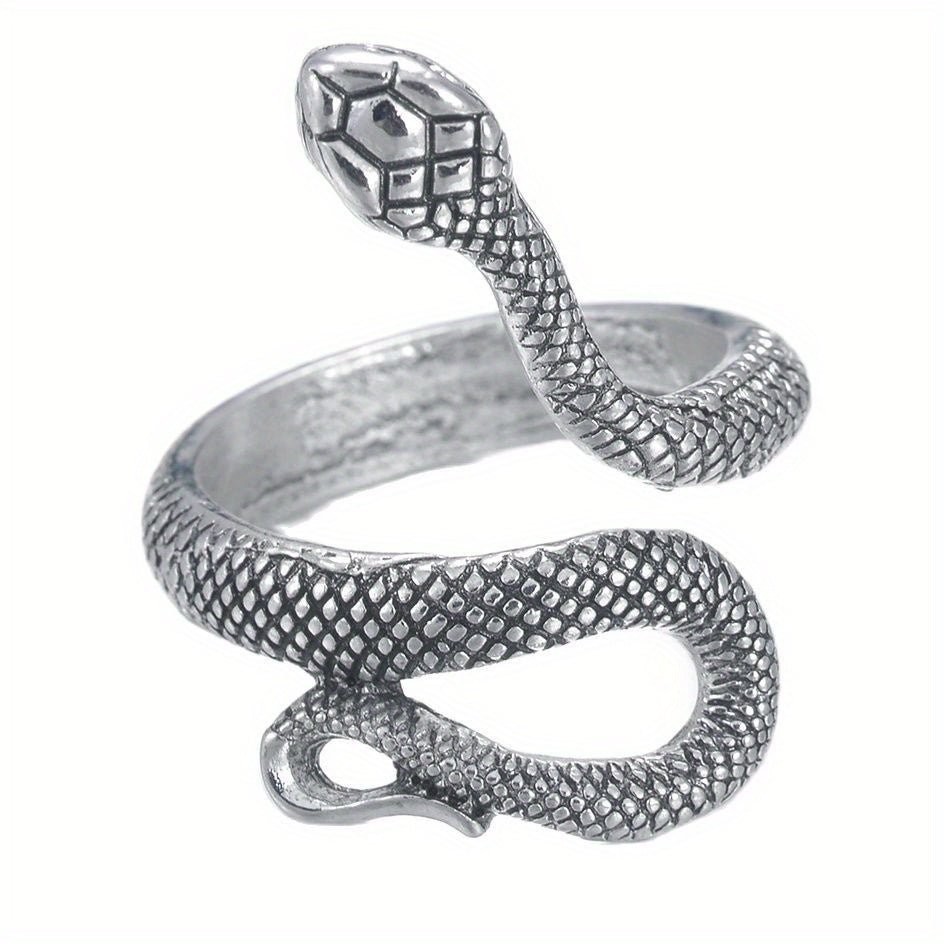 Add a stylish touch to your look with this fashionable open ring featuring a snake design. Perfect for men who want to make a statement with their accessories.