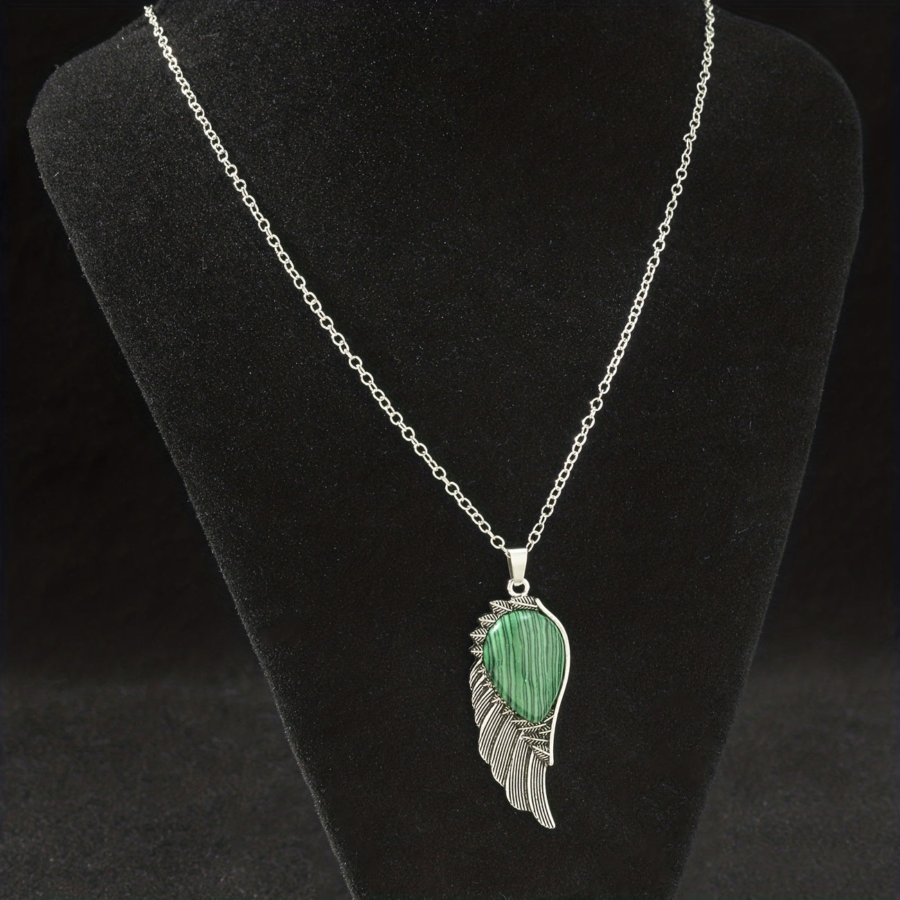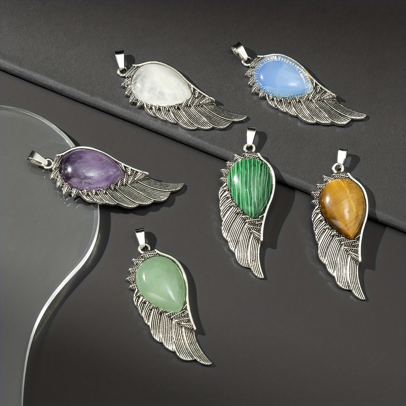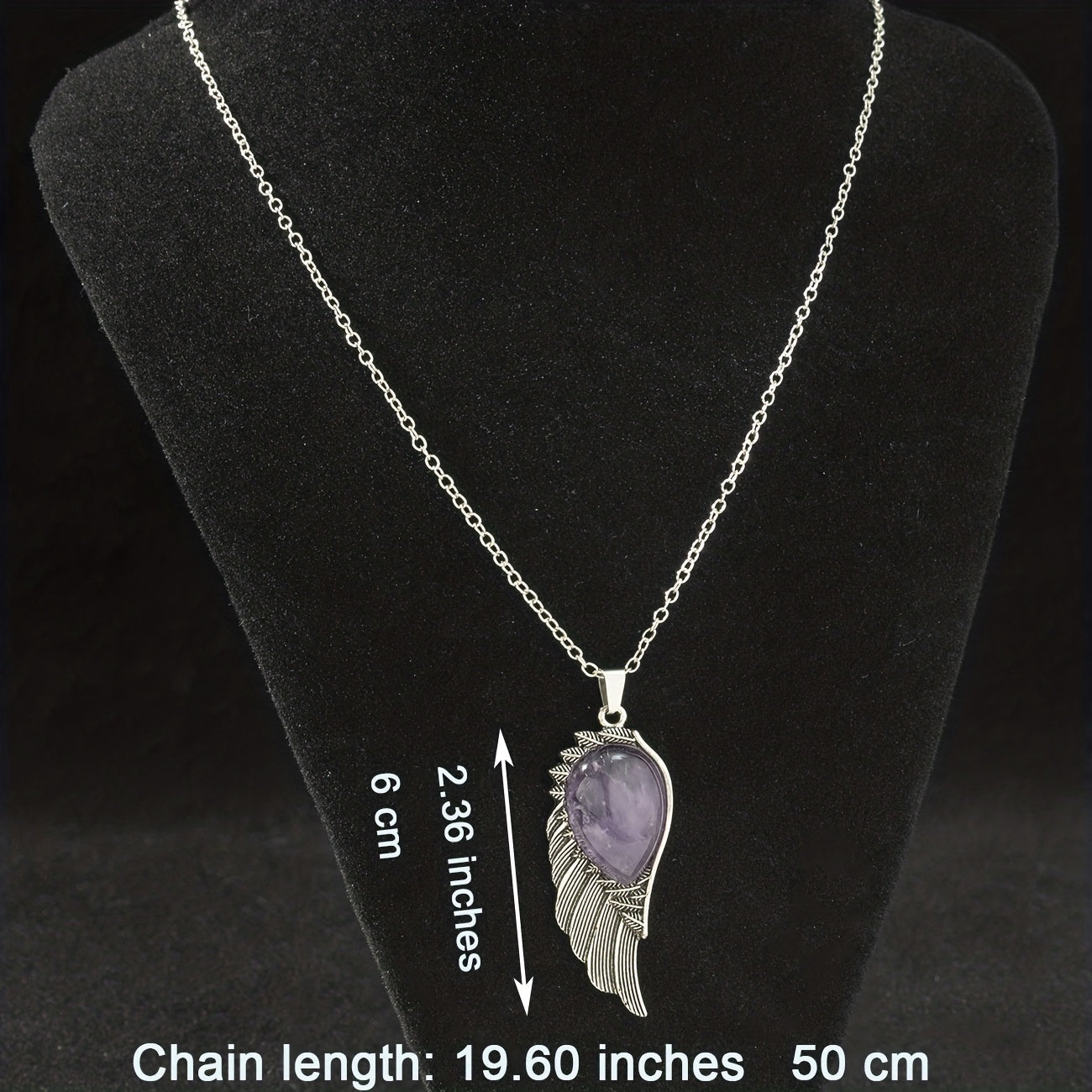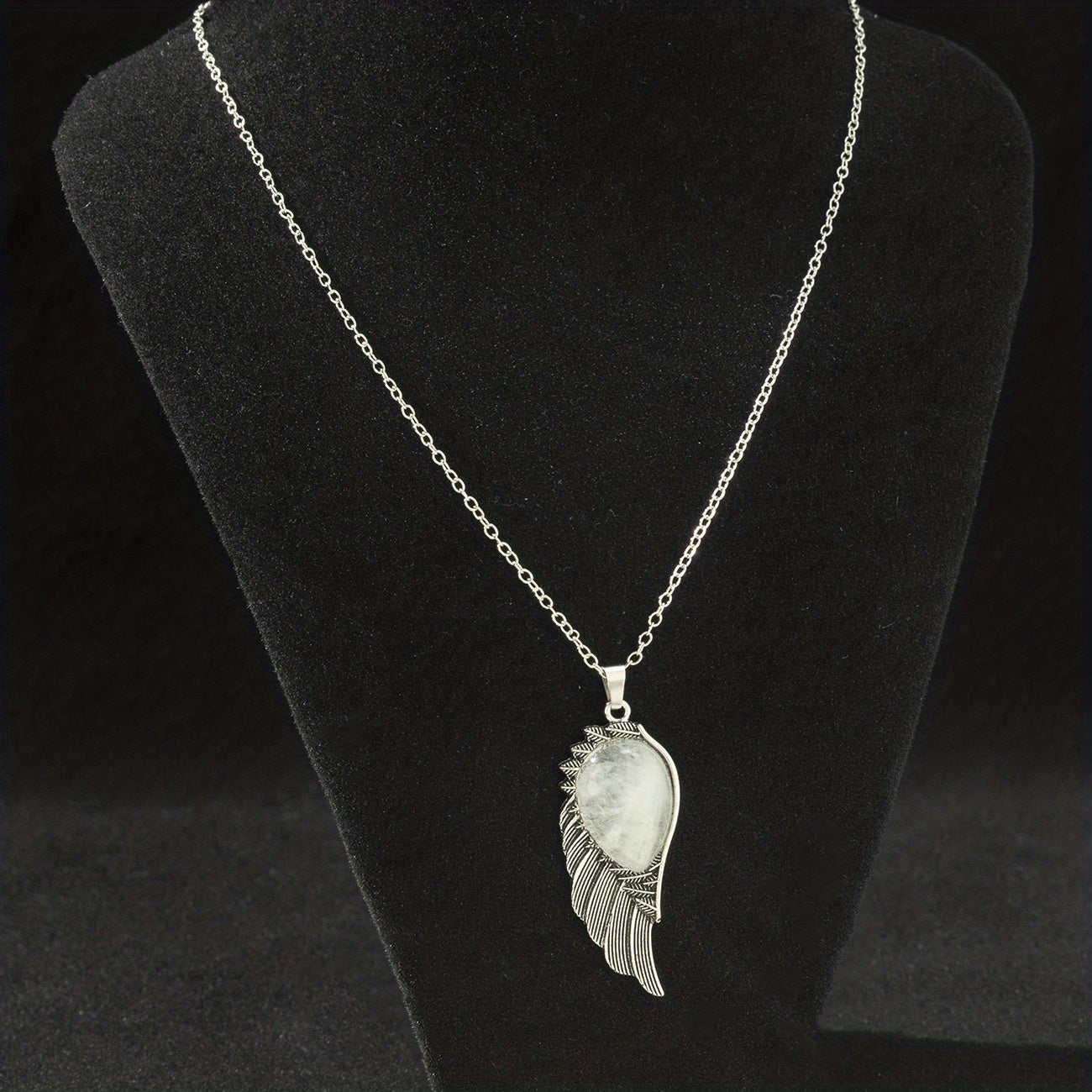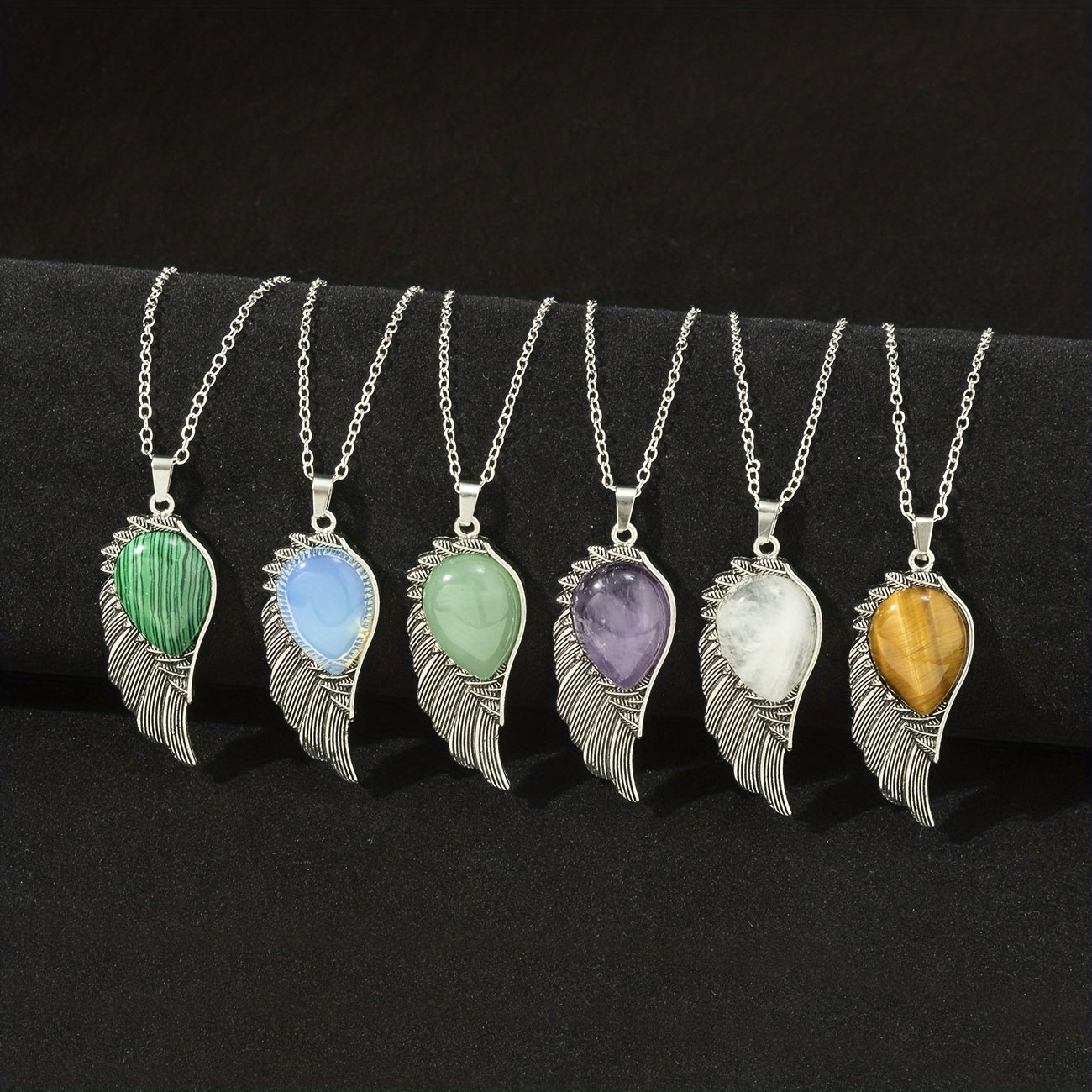 This unique necklace features a natural crystal stone pendant on a stylish feather design. Perfect for adding a touch of nature-inspired style to any outfit.