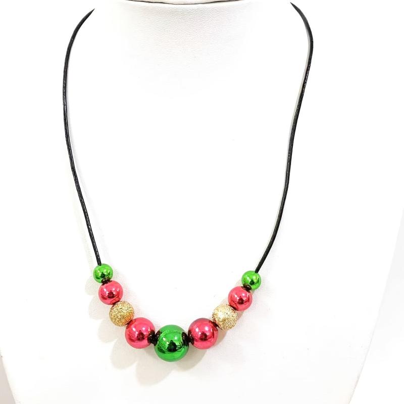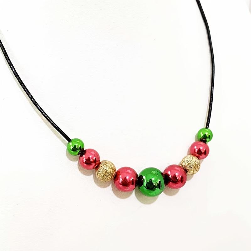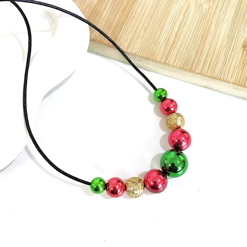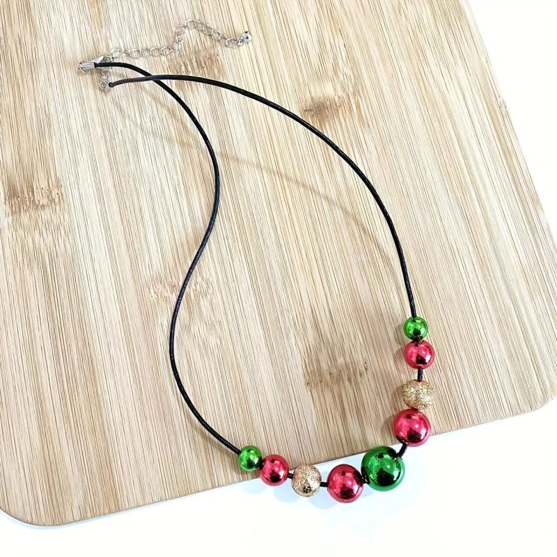 Add a touch of holiday cheer to your outfit with this fashionable and versatile beaded necklace. Perfect for both casual wear and festive celebrations during Christmas.