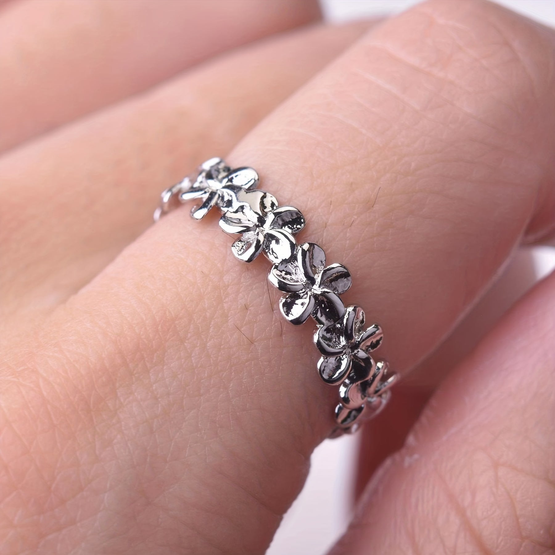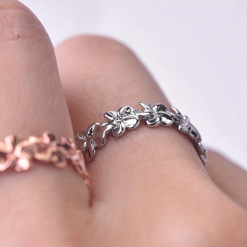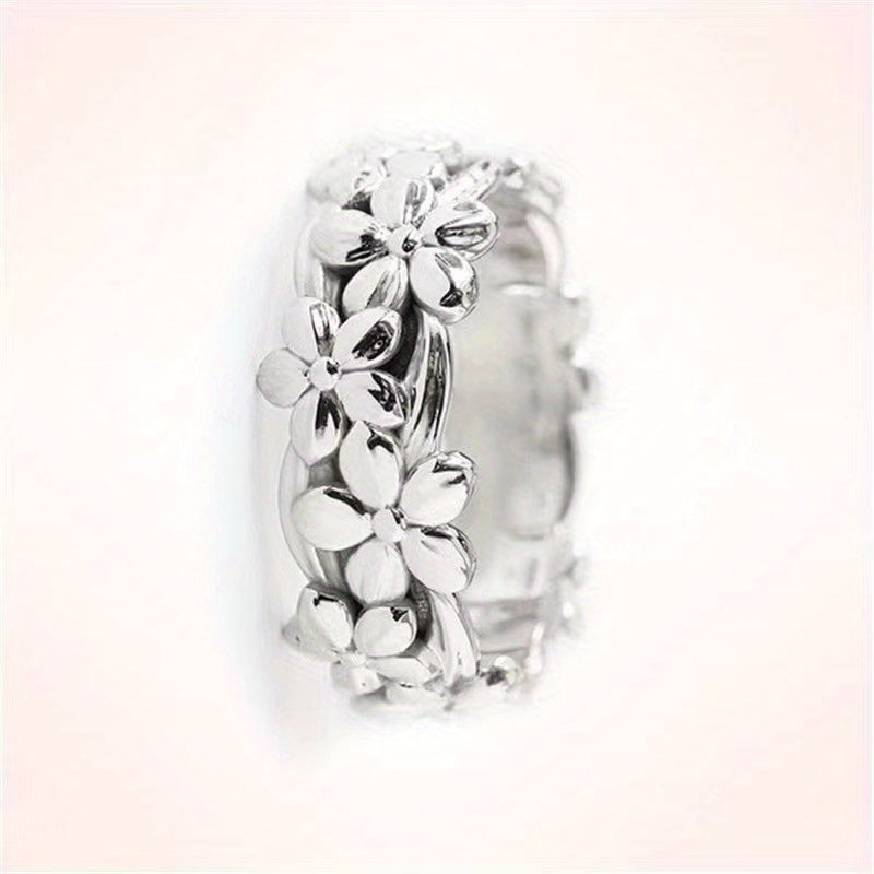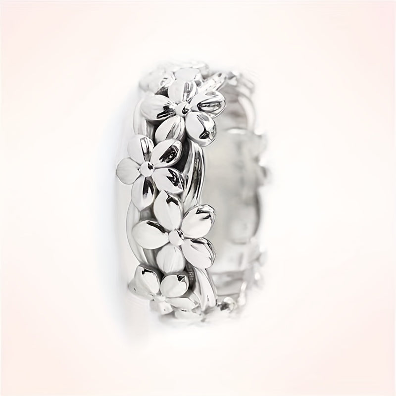 This men's ring features a beautiful flower design with a silvery finish, perfect for adding a touch of elegance to any outfit.