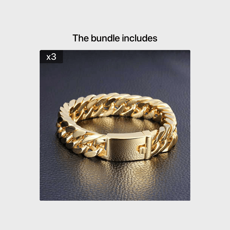 Add a touch of sophistication to your look with this stunning men's bracelet. Featuring a double buckle design and 10mm width, this golden plated alloy bracelet exudes an atmospheric charm.