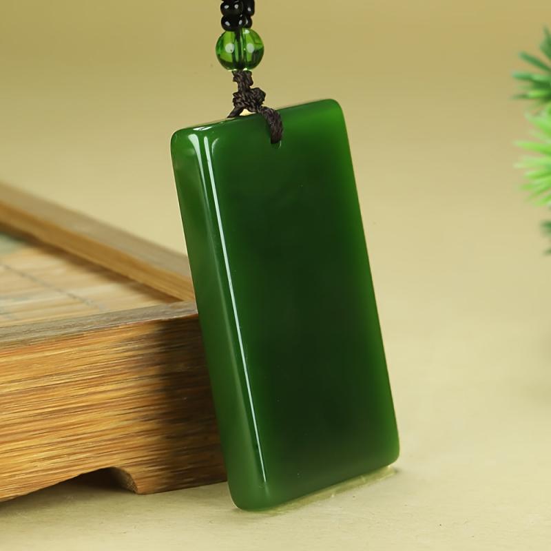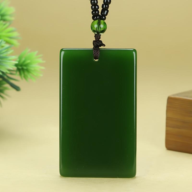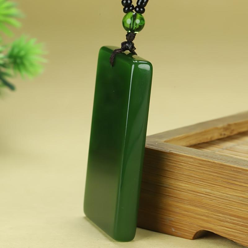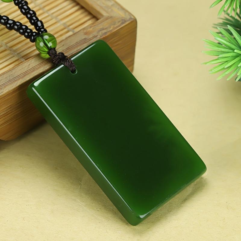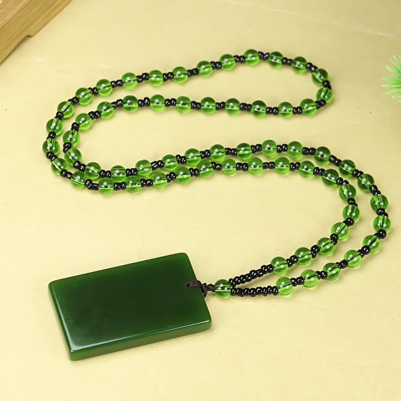 This stylish pendant necklace features a smooth polished spinach green rectangular pendant on a casual chain, perfect for everyday wear. The uncoated finish adds a minimalist touch to your look.