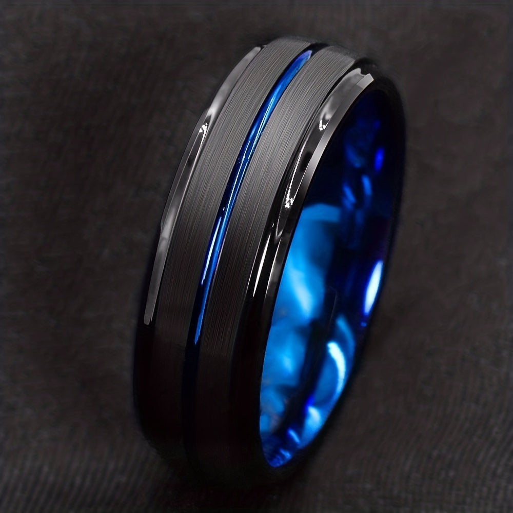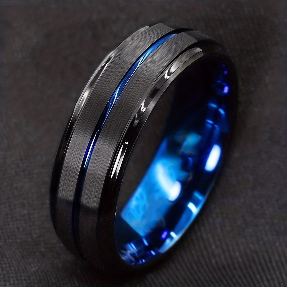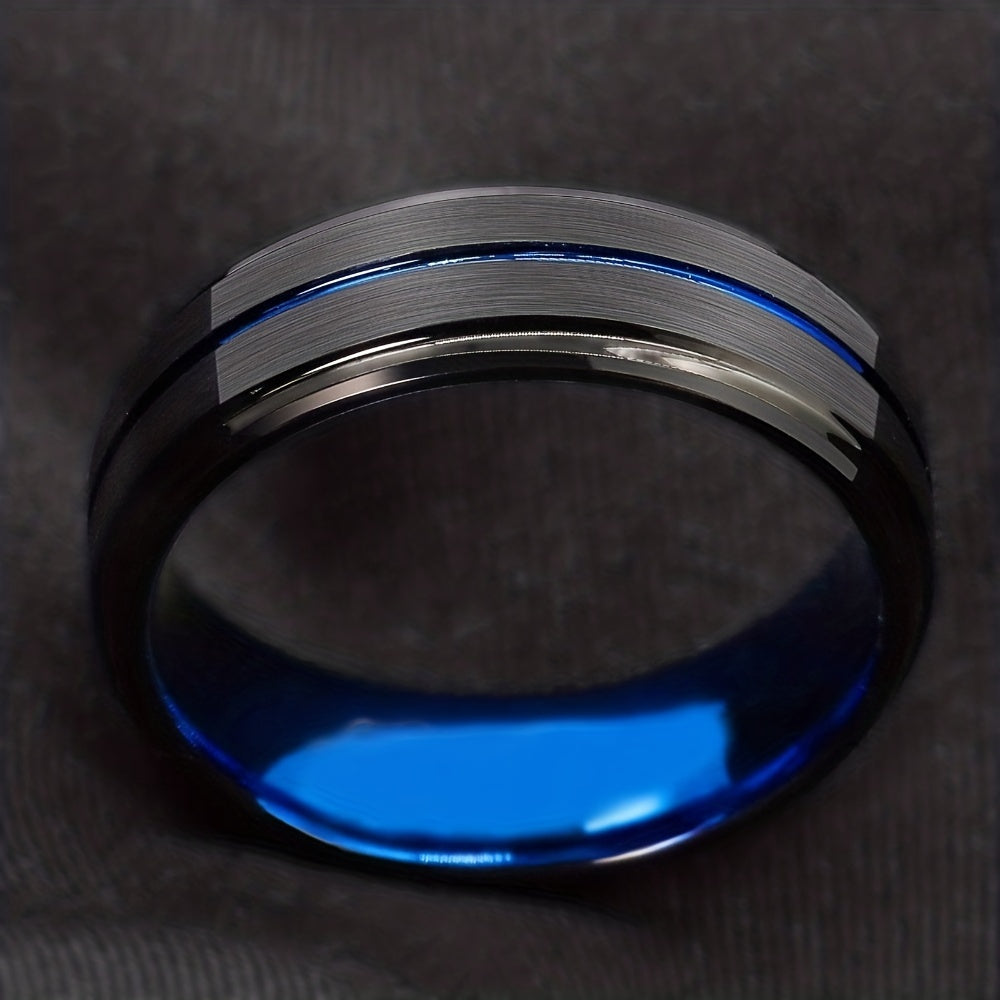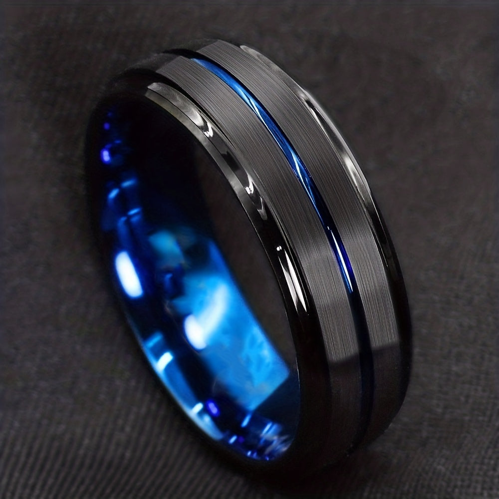 Enhance your style with this funky thin groove beveled edge stainless steel ring. Perfect for casual or dressy occasions.