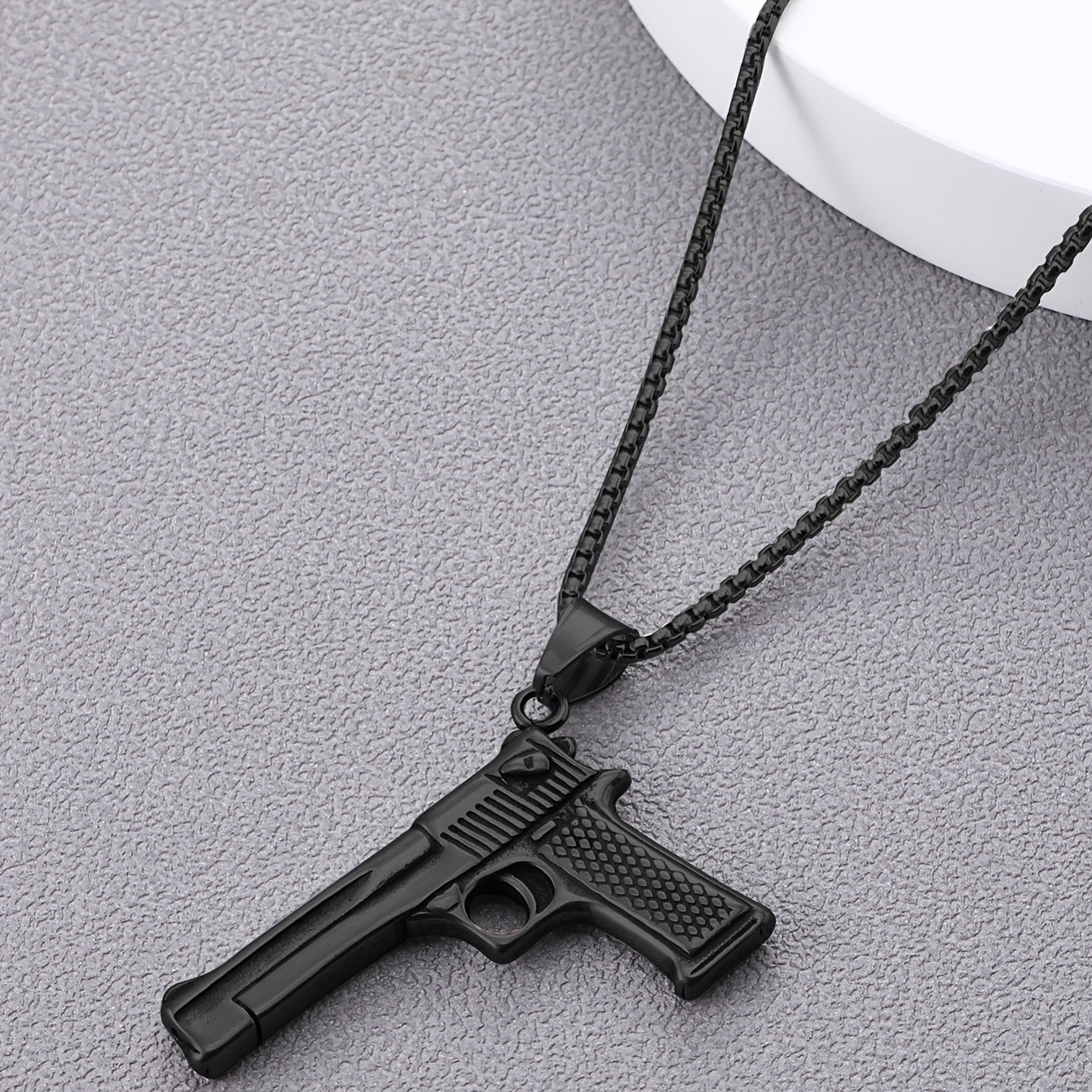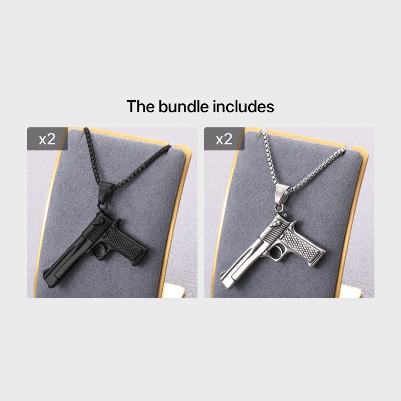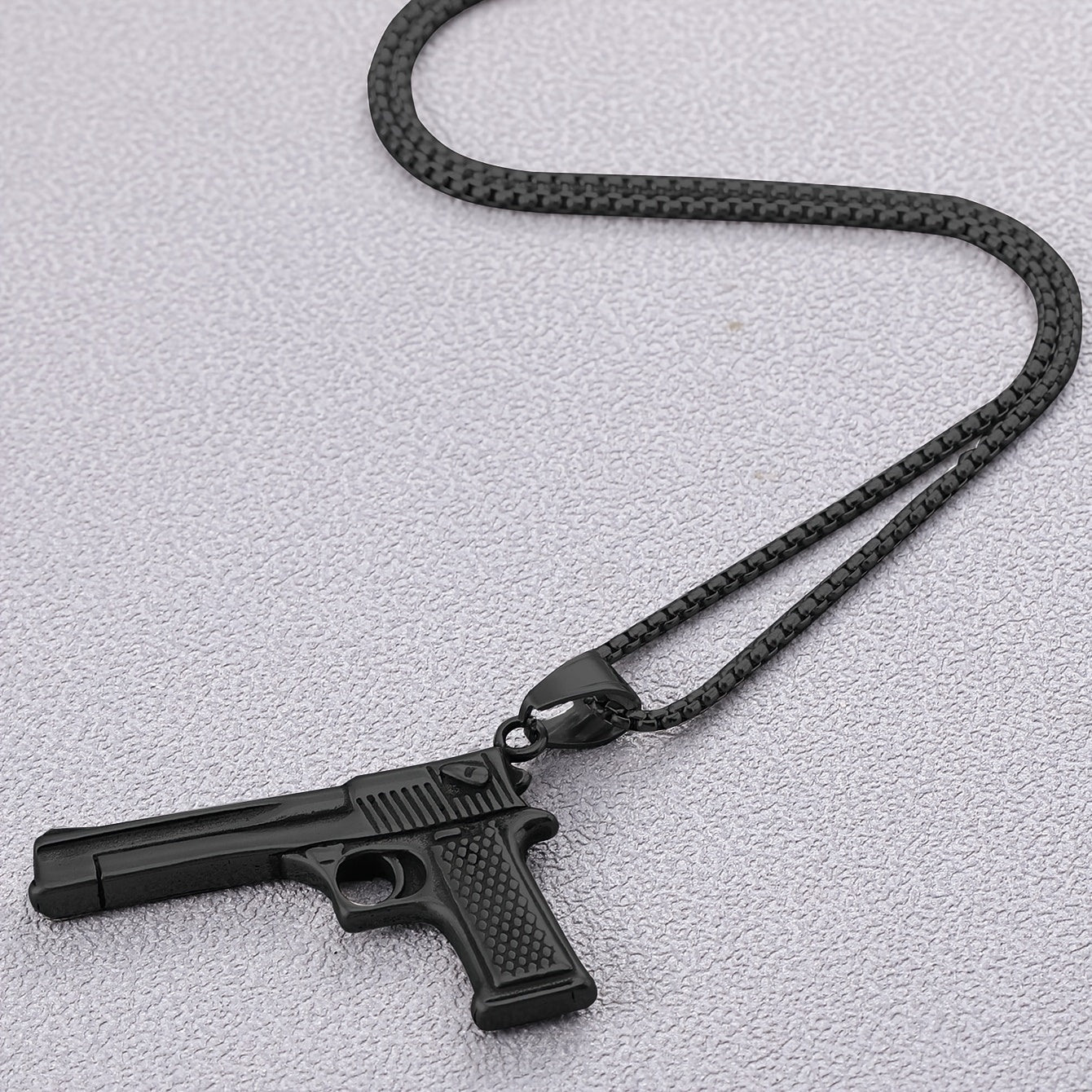 Make a bold statement with this punk style gun charm pendant necklace. Crafted from stainless steel, this necklace is perfect for adding a touch of edgy style to any outfit.