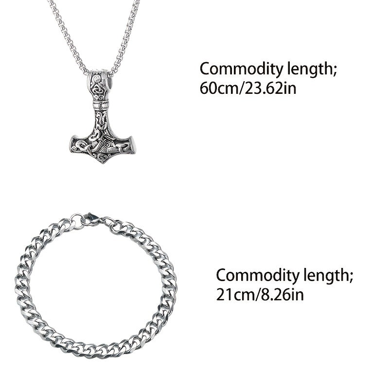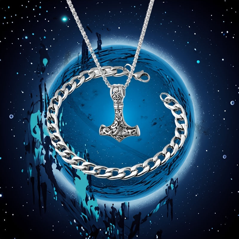 Enhance your style with this set of men's hammer pendant necklace and Cuban adjustable bracelet. Perfect gift for men, couples, or yourself.