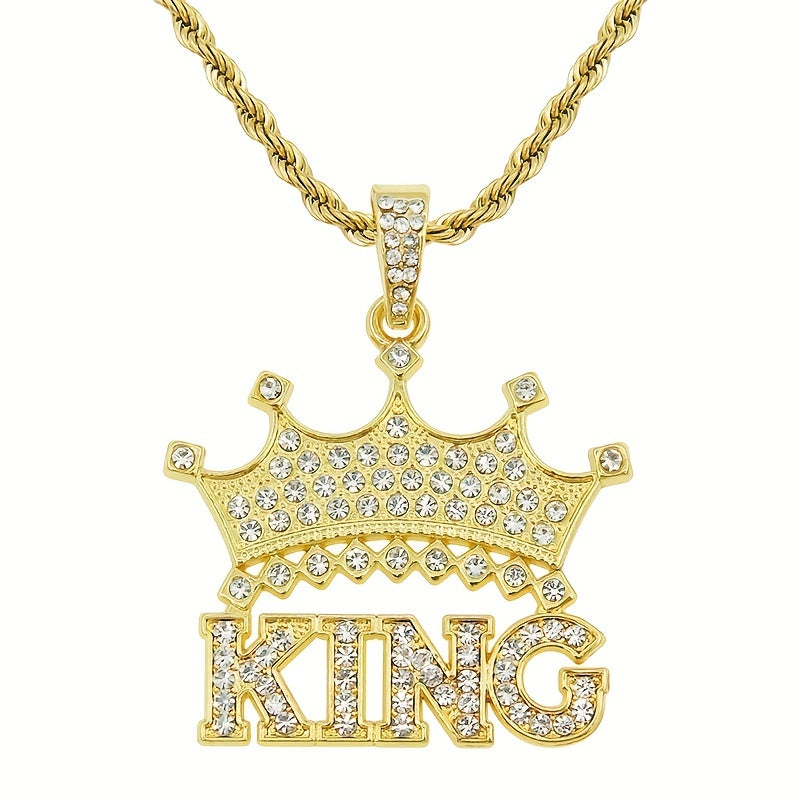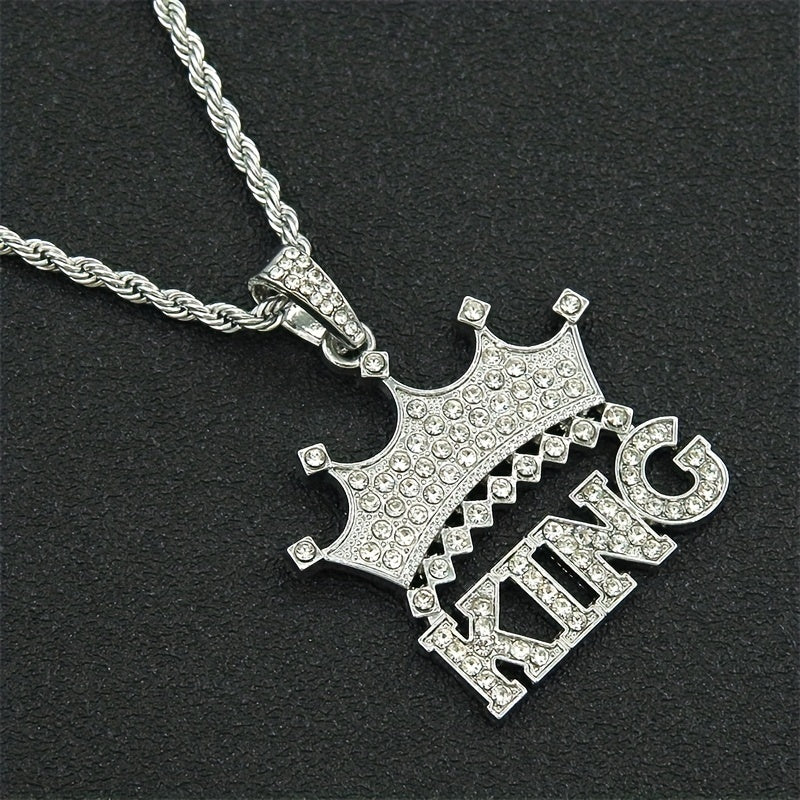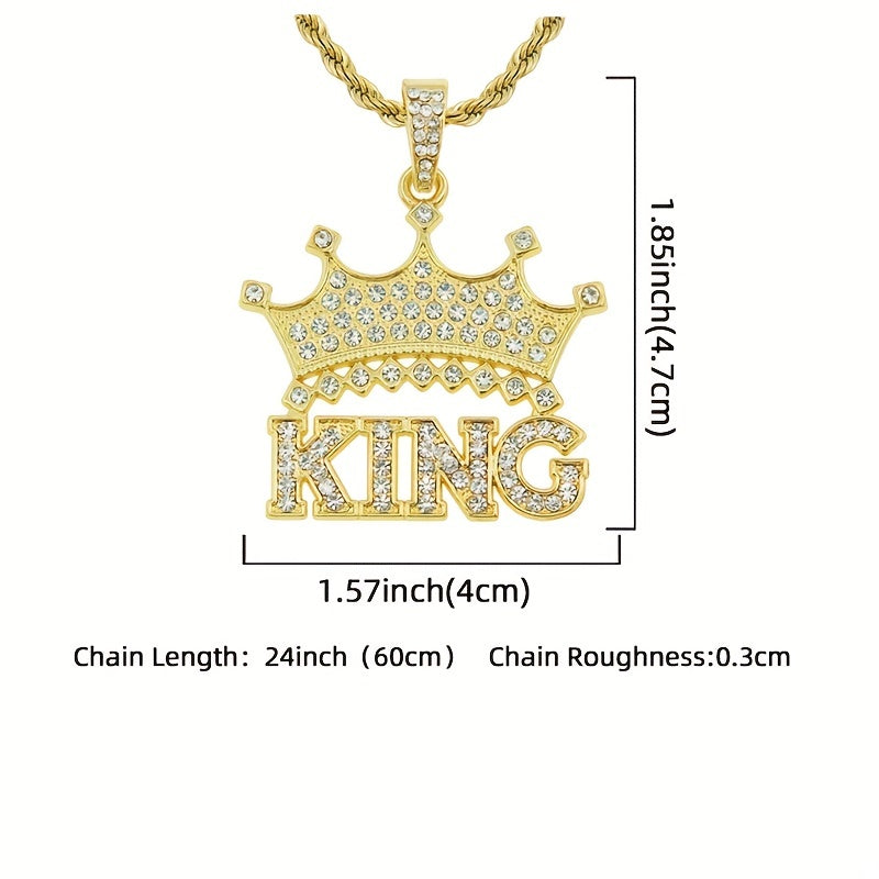 This men's necklace features a hip hop retro design with a crown letter king pendant. It is a stylish and unique accessory that adds an edgy touch to your outfit.