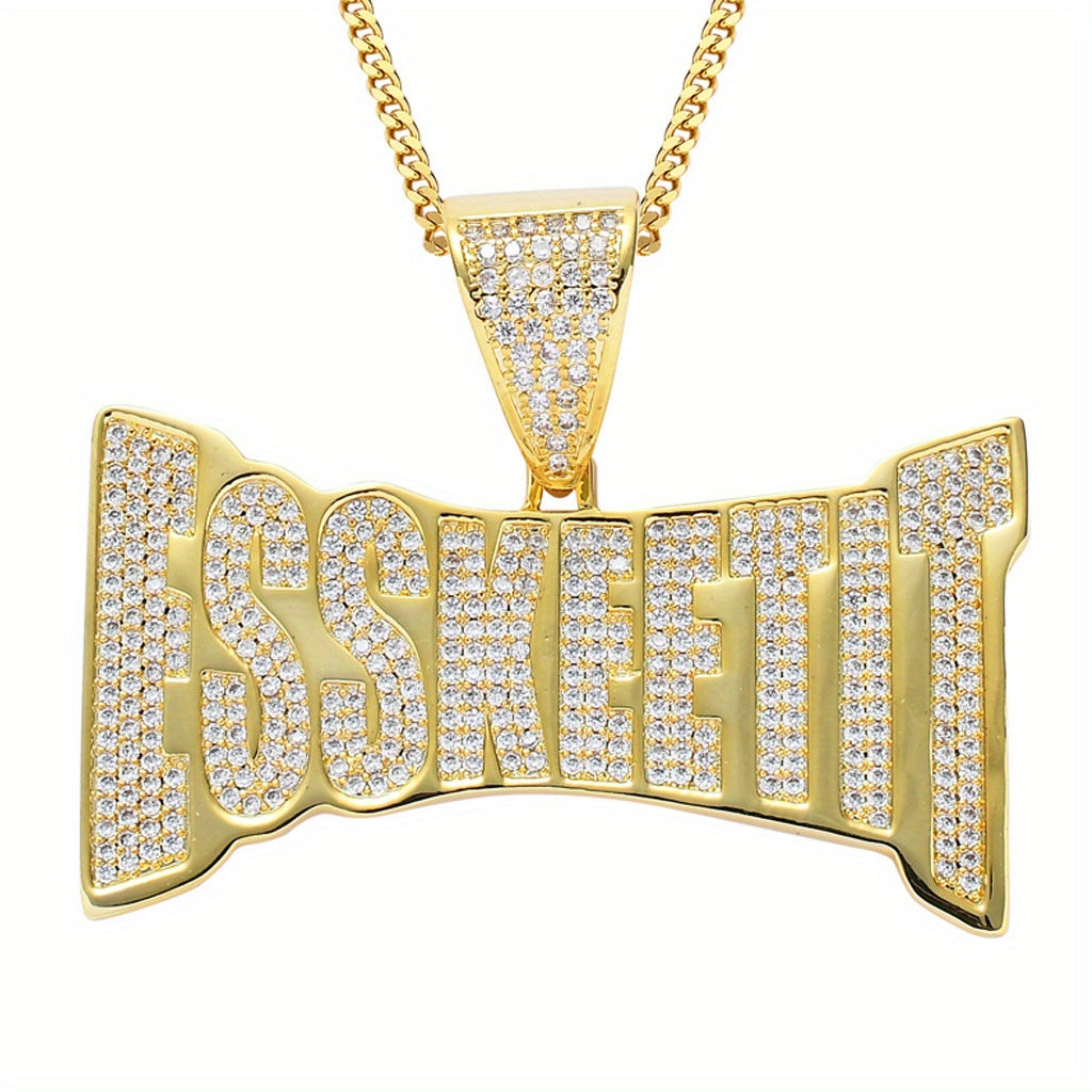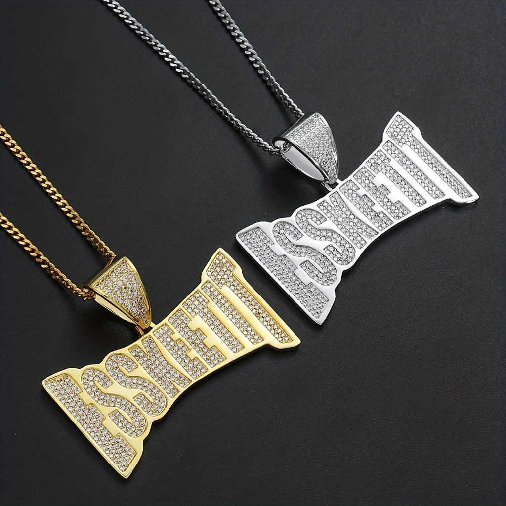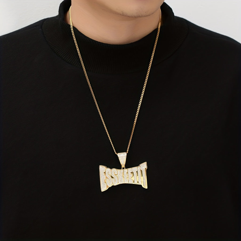 This stylish men's pendant necklace features essential letters micro set with zircon. Perfect for hip hop and punk styles.