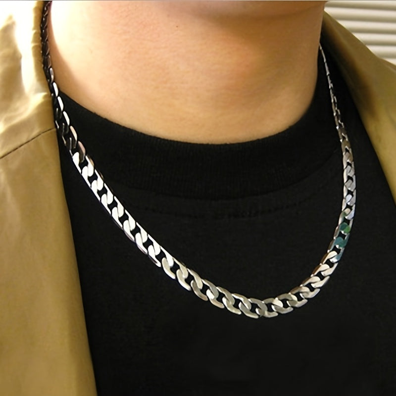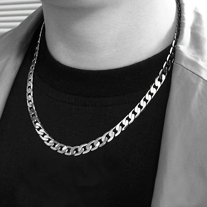 Stylish silver stainless steel necklace for men, perfect for a hip hop look.