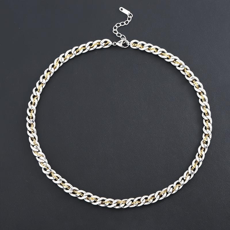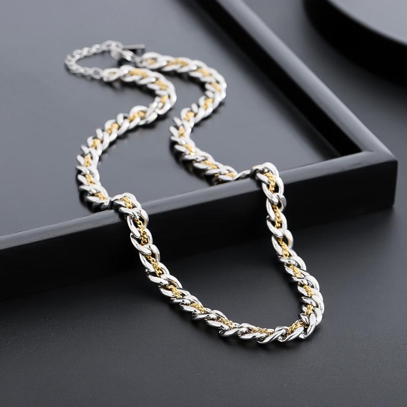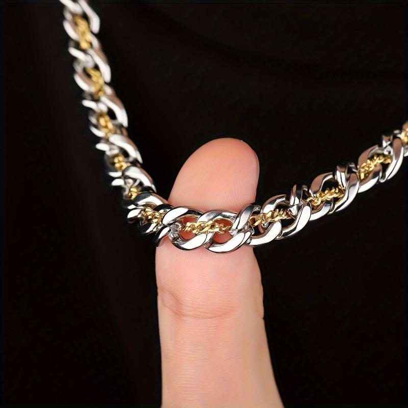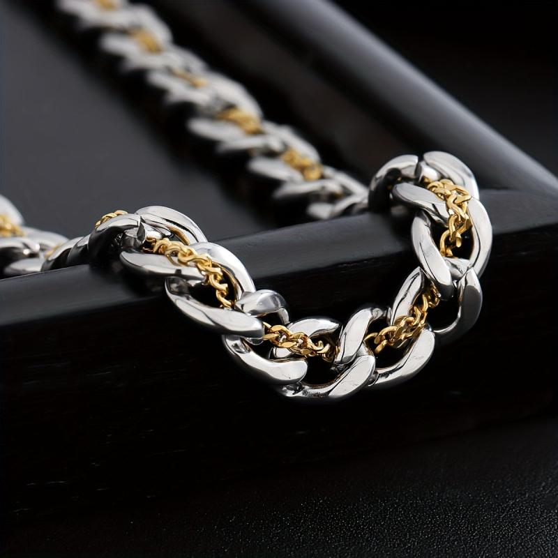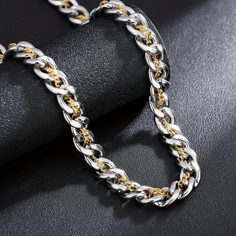This funky men's necklace features interlocking links with durable golden plating, perfect for everyday wear. It makes a sleek and stylish accessory or gift for men.