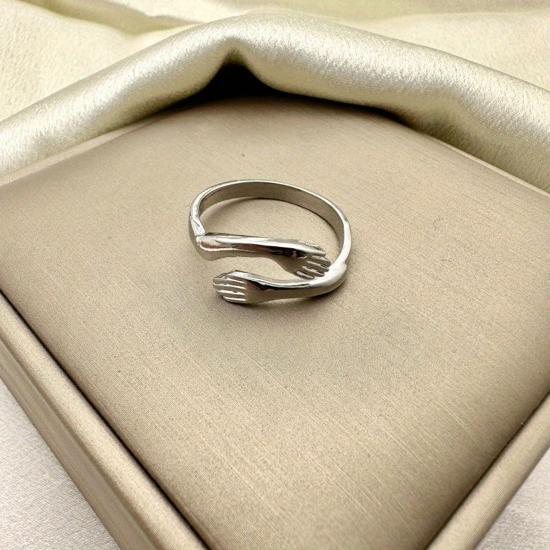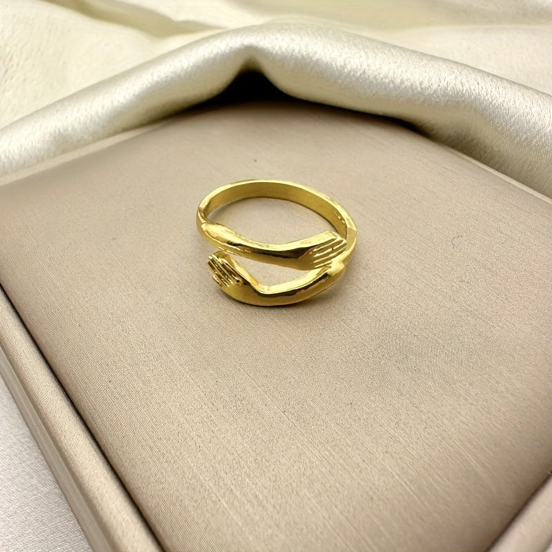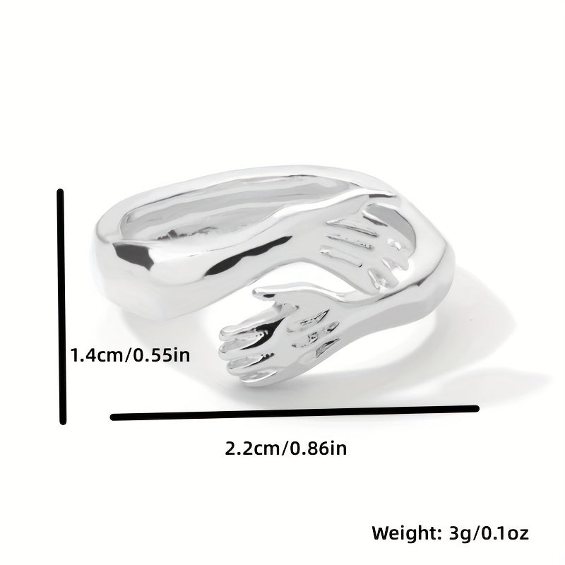 This unique ring features a design of hugging arms and hands, perfect for parties or weddings. It is adjustable to fit most sizes, making it a great gift for couples. The vintage style adds a touch of elegance to any outfit.